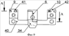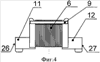 на фиг.3 (вид спереди) и фиг.4 (вид слева) в двух проекциях представлен сердечник электромагнитного коммутационного аппарата с U-образными амортизаторами и закрепленными короткозамкнутыми витками;