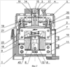 В корпусе 1 располагается Ш-образный сердечник 6 с размещенной на его среднем керне включающей катушкой 8. В пазах крайних кернов сердечника 6 установлены короткозамкнутые витки 9 и 10, фиксируемые на сердечнике 6 при помощи амортизаторов 11 и 12, изготовленных из эластичного материала. Амортизаторы 11 и 12 имеют U-образную форму, которая повторяет форму сердечника 6. В верхних частях крайних ответвлений 24 и 25 амортизаторов 11 и 12 выполнены пазы и сквозные отверстия для установки короткозамкнутых витков 9 и 10, а в нижней части по вертикальной оси – сквозное отверстие для установки амортизаторов 11 и 12 на шпонку 13. Амортизаторы 11 и 12 упираются своими торцами 26 и 27 во внутренние стенки корпуса 1 и надежно фиксируют сердечник 6 с установленными на нем короткозамкнутыми витками 9 и 10 в корпусе 1. На поверхностях амортизаторов 11 и 12, обращенных к сердечнику 6, могут быть выполнены углубления под головки заклепок 28 сердечника 6.