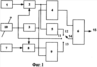 И, наконец, при положении переключателя в положении 13 на выходе RS-триггера 6 формируется случайная по длительности и по положению переднего фронта последовательность (см. диаграмму U13 на фиг.2), характеризующая наиболее общий случай. Второй дополнительный генератор шума 7 генерирует случайный процесс, который поступает на информационный вход второго устройства выборки и хранения 8, на управляющий вход которого подается тактовая последовательность с тактового генератора 10, при этом на выходе получается экстраполированное напряжение. Во второй схеме сравнения 9 осуществляется акт сравнения с напряжением генератора линейно изменяющегося напряжения 3, и полученный в момент пересечения этих напряжений импульс возвращает RS-триггер 6 в исходное состояние через контакты 13-14 переключателя.
