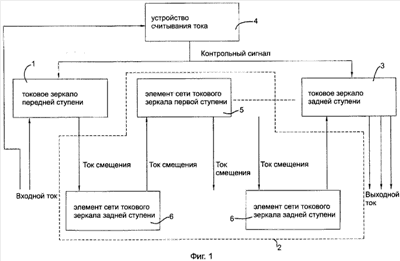 Контур считывания тока (4) используется для детектирования токового сигнала и определения величины входного тока на передней ступени токового зеркала (1). Если входной ток меньше заданного порогового тока, тогда контур считывания тока (4) выдает на выходе управляющий сигнал для передней ступени и задней ступени токового зеркала (1, 3), чтобы одновременно настроить их коэффициенты усиления. Поэтому ток смещения не усиливается в соответствии с первым коэффициентом усиления передней ступени токового зеркала (1), но величина выходного тока по-прежнему остается постоянной.