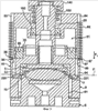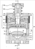 Поршень смонтирован в корпусе упруго с помощью пружины 150, работающей на сжатие, которая находится между кольцом 140, закрепленным на конце поршня, и соответствующим кожухом, установленным внутри корпуса. Уплотнение между поршнем и соответствующими внутренними поверхностями корпуса обеспечивается при помощи сальников 30, 160, установленных по обе стороны от кольцевой отражательной перегородки, отделяющей поршень от внутренней полости корпуса. Находясь между ними, эти два сальника 30, 160 ограничивают тем самым камеру повышенного давления 81, которая может расширяться под воздействием жидкой среды, поступающей в эту камеру через входное отверстие 82 для подачи жидкой среды, расположенное на верху корпуса (см. фигуру 3).