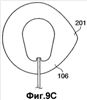 Форма водонепроницаемого основания 106 описана как идеальный круг, который обычно используется. В качестве альтернативы основание 106 может иметь другие формы, такие как эллипс или овал, как показано на фиг.9А, или форму, которая частично включает в себя прямую линию, такую как прямоугольник, как показано на фиг.9В. К тому же, основание 106 может быть снабжено уголком 201 (фиг.9C) или выступом 202 (фиг.9D) для облегчения удаления.
