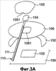 Фиг.1 – вид сверху, показывающий общую компоновку биоэлектрода согласно варианту осуществления настоящего изобретения. Со ссылкой на фиг.1 биоэлектрод 100 содержит пять электродных площадок с 101а по 101е, разъем 120 и проводники с 110а по 110е, которые присоединяют разъем 120 к соответствующим электродным площадкам с 101а по 101е. Тыльные поверхности электродных площадок с 101а по 101е (оснований с 106а по 106е) являются клейкими и соответственно снабжены первым разделителем 109, служащим в качестве антиадгезионной бумаги.