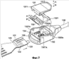 Фиг.6 – вид в перспективе, показывающий компоновку узла установки разъема промежуточного кабеля (кабеля подключения биоэлектрода), который подключает разъем 120 к устройству получения биомедицинского сигнала (не показано). Другой конец промежуточного кабеля напрямую подключен к устройству получения биомедицинского сигнала. В качестве альтернативы другой конец промежуточного кабеля снабжен разъемом устройства (не показан), который соответствует разъему устройства получения биомедицинского сигнала. Промежуточный кабель подключает разъем устройства к разъему устройства получения биомедицинского сигнала.