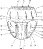 Как было упомянуто, фиг.2 показывает, как подгузник в виде трусов выглядит до того, как его надели. Все эластичные элементы и компоненты являются, по существу, не растянутыми. Так как ножной эластик 18 и эластик на талии 20 прикреплены к наружным трусам 2 в растянутом состоянии, они сжимают материал наружных трусов 2 при прекращении растяжения. Это значит, что, до того, как их одели, трусы 1 имеют слегка сморщенный край талии 13 и ножные края 15, которые сморщены в ластовичной части 5 и в задней части 4.