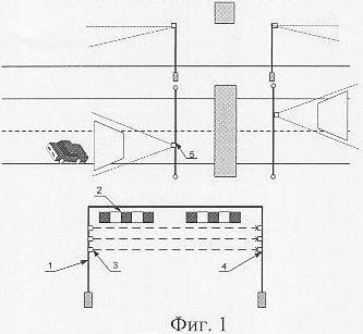 Сущность изобретения состоит в повышение надежности и безопасности движения за счет создания зоны предварительного контроля на дополнительном расстоянии Lконтр за плоскостью габаритных ворот, а также повышении надежности обнаружения транспортных средств с нарушениями габарита.
