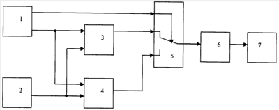 Сущность изобретения поясняется чертежом, на котором представлена блок-схема системы, реализующей заявляемый способ автоматического управления полетом высокоманевренного самолета при отказе информационной системы и переключении управления с основного контура на резервный.