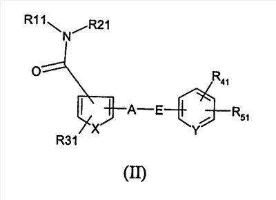 В опубликованной заявке № WO00/27820 описаны амидные производные N-арил(тио)антраниловой кислоты. В опубликованной заявке № WO99/32477 и патенте США № 6140351 описаны производные ортоантранилимида. В опубликованной заявке № WO00/27819 описаны амиды антраниловой кислоты. В опубликованных заявках №№ WO02/00651 и WO01/19798 описаны ингибиторы фактора Ха. В опубликованной заявке № WO01/07050 описаны агонисты рецептора ноцицептина ORL-1. В патенте США № 5968965 описаны ингибиторы фарнезил-белка. В опубликованной заявке № WO01/64642 и патенте США №6376515 описаны бензамиды. В опубликованной заявке № WO01/05763 и патенте США №6410561 описаны соединения, активные в отношении мускаринового рецептора. Патент США № 6410561 описывает амидные производные.