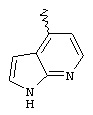 1Н-пирроло[2,3-b]пиридин-4-карбоксальдегид: К раствору (200 мг, 1,4 ммоль) 1Н-пирроло[2,3-b]пиридин-4-карбонитрила в ТГФ (7 мл) при -78оС в атмосфере азота добавляют Dibal-H (1,0М в толуоле, 3,07 мл, 3,07 ммоль). Реакционную смесь перемешивают при -78оС в течение 1 часа, нагревают до 55оС и дополнительно перемешивают в течение 2 часов. Добавляют дополнительно один эквивалент Dibal-H (1,4 мл, 1,4 ммоль) и смесь перемешивают при 55оС в течение 2 часов. Смесь охлаждают до 5оС, подкисляют 2M HCl и перемешивают в течение 15 минут. Затем смесь нейтрализуют насыщенным водным раствором NaHCO3, экстрагируют CH2Cl2 (5×25 мл), промывают насыщенным раствором соли, сушат над безводным сульфатом натрия и концентрируют в вакууме с получением 1Н-пирроло[2,3-b]пиридин-4-карбоксальдегида (107 мг, 52%). МС (ES+): 146 [MH+].