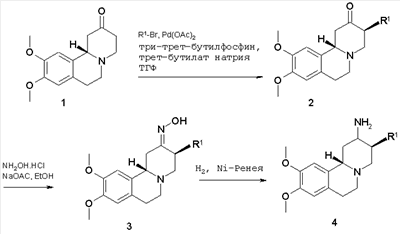 а) рац-9,10-Диметокси-3 Смесь ацетата палладия (1,72 г), трет-бутилата натрия (22,01 г) и рац-9,10-диметокси-1,3,4,6,7,11b МС (ISP): 352,4 (М+Н)+. б) Оксим рац-9,10-диметокси-3 К суспензии рац-9,10-диметокси-3 МС (ISP): 367,4 (М+Н)+. в) рац-9,10-Диметокси-3 К раствору оксима рац-9,10-диметокси-3 МС (ISP): 353,4 (М+Н)+. Пример 3 9,10-Диметокси-3(R)-м-толуол-1,3,4,6,7,11b(R)-гексагидро-2H-пиридо[2,1-а]изохинолин-2(S)-иламин