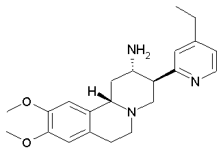 Заглавное соединение получали по аналогии с примером 2. Оно было получено в виде порошка оранжево-красного цвета. Данный продукт в ходе хроматографии элюировали вторым (сравни пример 15). МС (ISP): 354,3 (М+Н)+. Пример 9 9,10-Диметокси-3(S)-(4-метилпиридин-2-ил)-1,3,4,6,7.11b(S)-гексагидро-2H-пиридо[2,1-а]изохинолин-2(S)-иламин