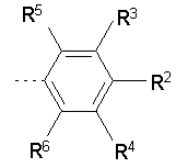 где R2 означает водород или (низш.) алкокси и R3, R4, R5 и R6 выбирают каждый независимо из водорода, (низш.) алкила, галоидированного (низш.) алкила, галоида или циклоалкила при условии, что R2, R3, R4, R5 и R6 не означают все водород. Предпочтительный (низш.) алкоксильный остаток R2 означает метоксигруппу. Предпочтительные (низш.) алкильные остатки в R3, R4, R5 и R6 означают метил, этил и изопропил, причем метил является особенно предпочтительным. Предпочтительный галоидированный (низш.) алкильный остаток в R3, R4, R5 и R6 означает фторметил. Предпочтительный остаток галоида в R3, R4, R5 и R6 означает хлор. Предпочтительный циклоалкильный остаток в R3, R4, R5 и R6 означает циклопропил. В одном предпочтительном варианте воплощения изобретения R2, R4, R5 и R6 означают водород, а R3 означает (низш.) алкил, галоидированный (низш.) алкил, галоид или циклоалкил, причем (низш.) алкил, такой, как метил или этил, галоидированный (низш.) алкил, такой, как фторметил, или галоид, такой, как хлор, являются особенно предпочтительными. В другом предпочтительном варианте воплощения изобретения R2, R4 и R5 означают водород, а R3 и R6 означают каждый независимо (низш.) алкил, галоидированный (низш.) алкил, галоид или циклоалкил, причем (низш.) алкил, такой, как метил, или галоид, такой, как хлор, являются особенно предпочтительными. В другом варианте воплощения по настоящему изобретению R1 означает