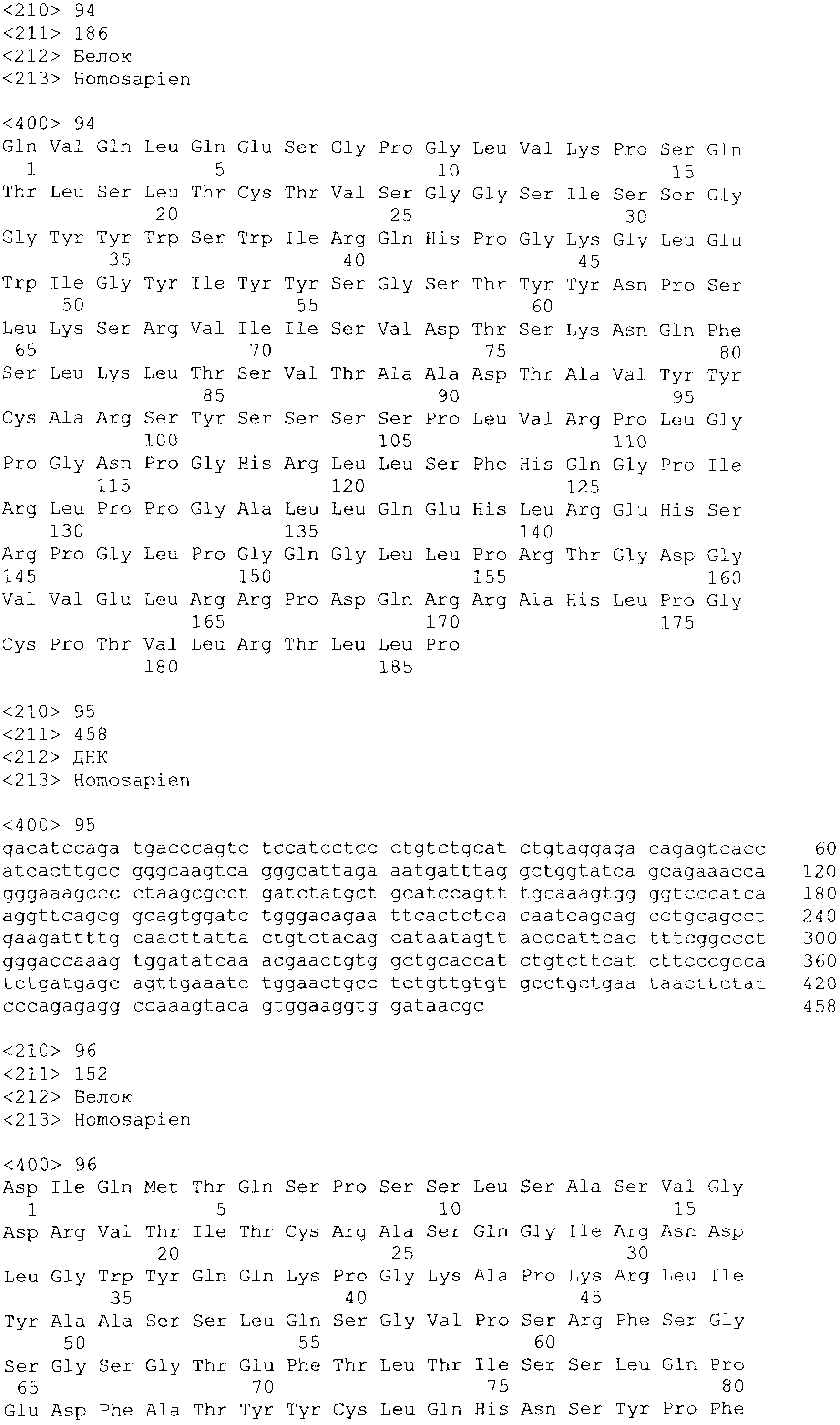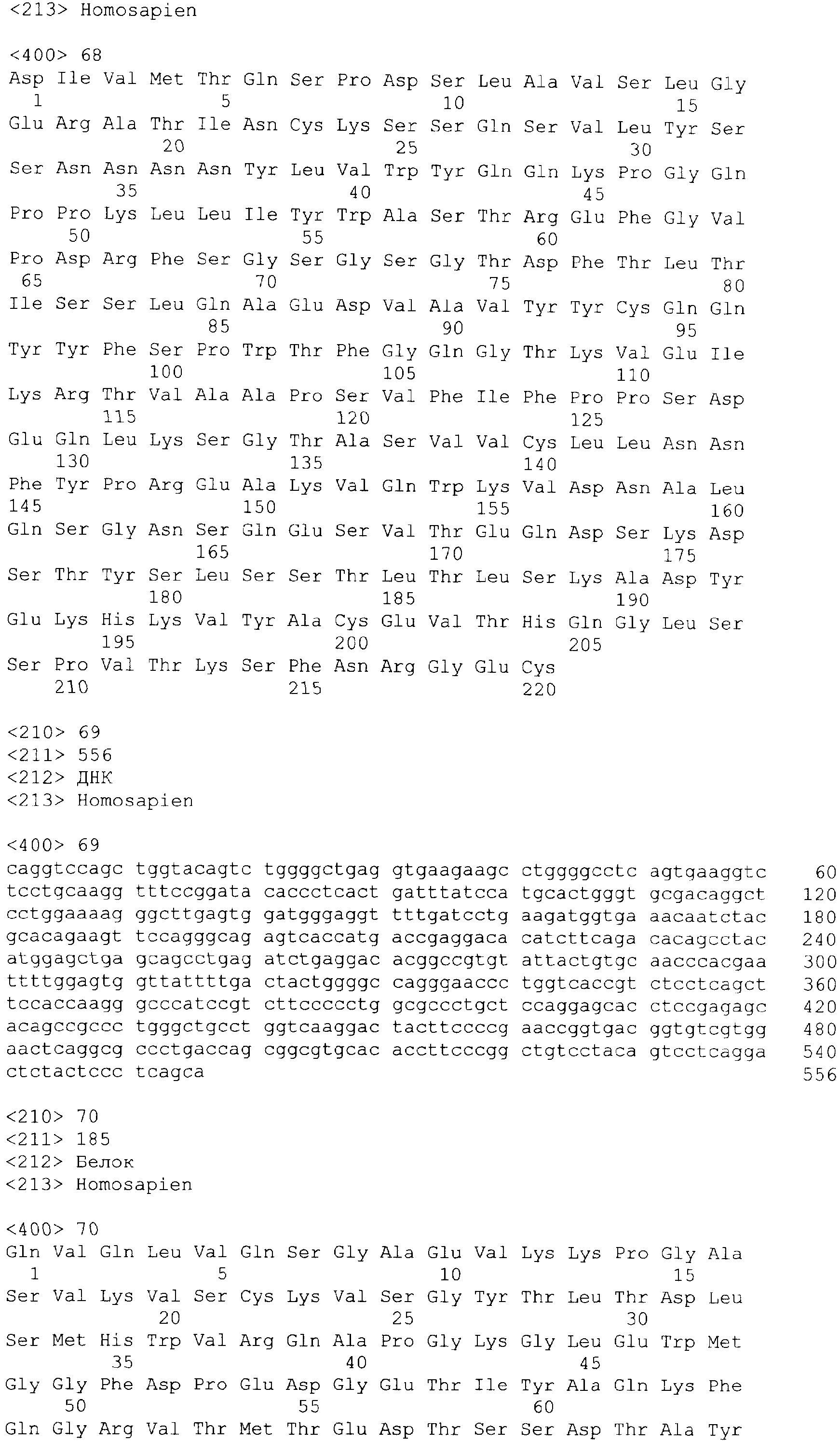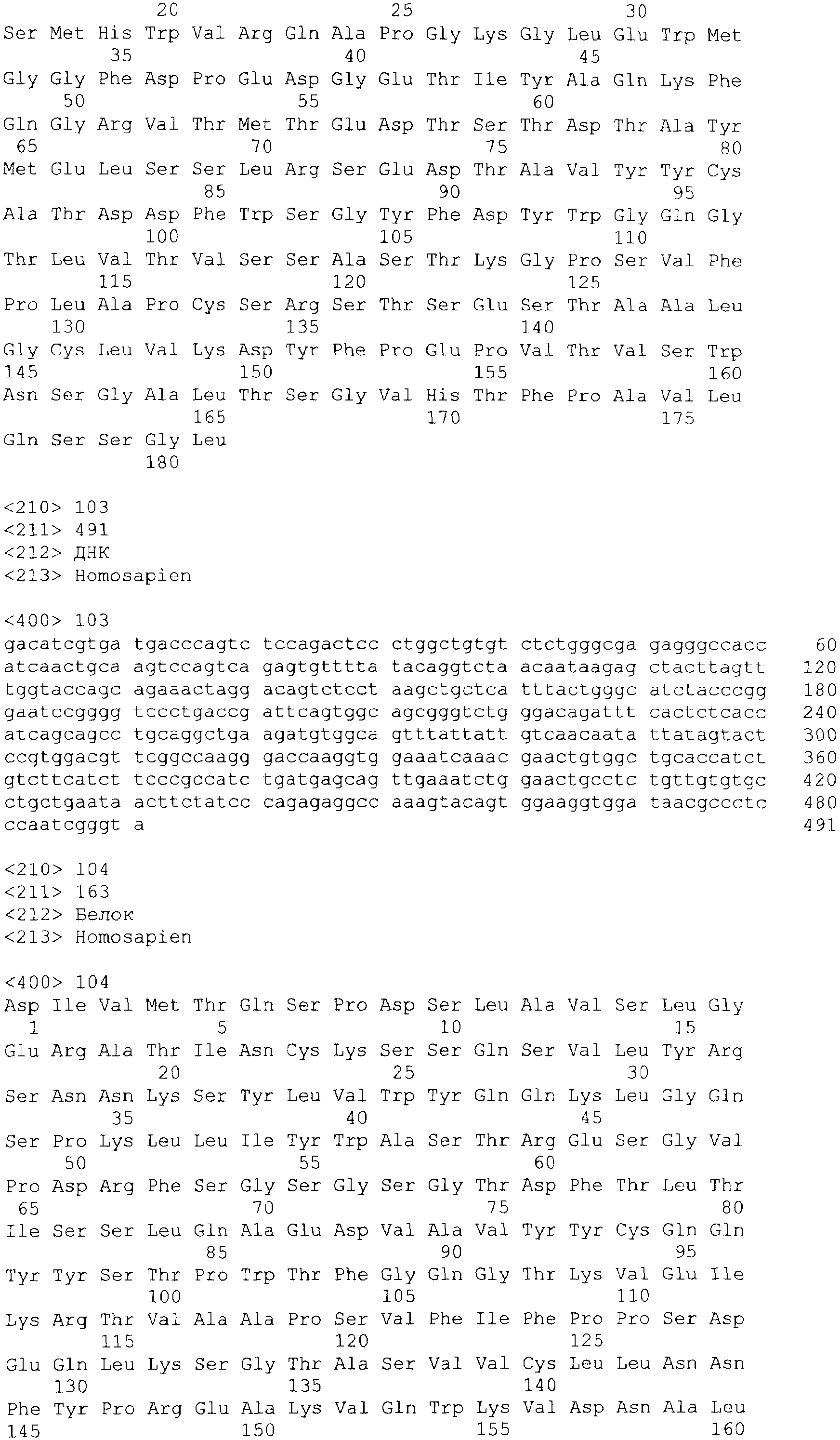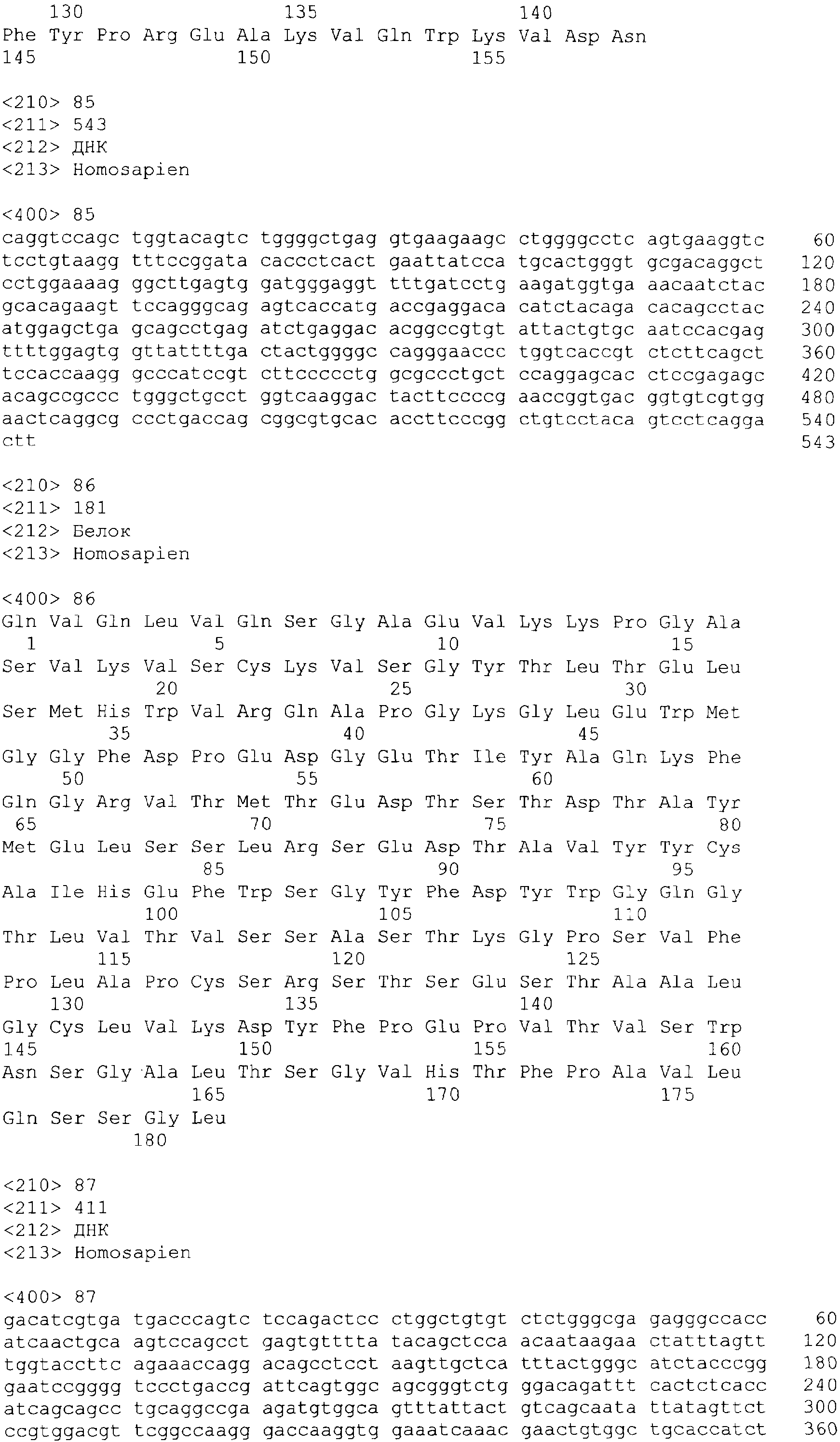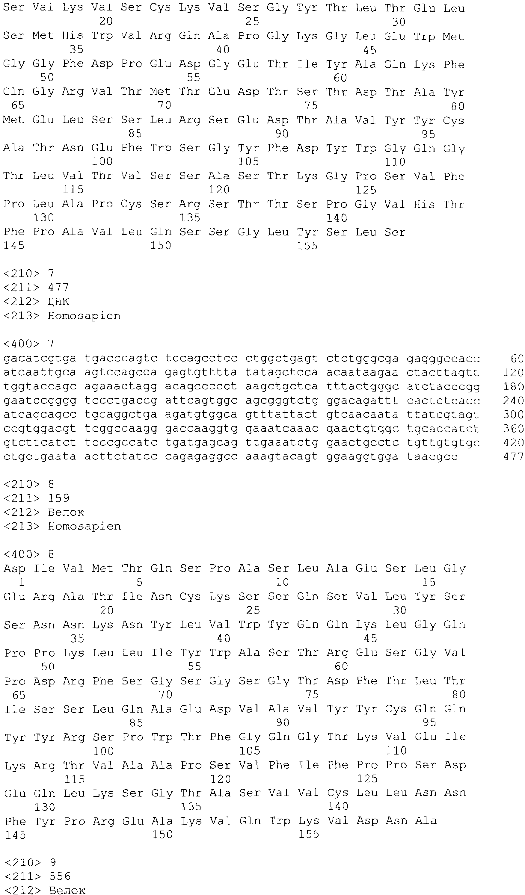 Нуклеотидные и аминокислотные последовательности вариабельной области тяжелой и легкой цепей репрезентативных человеческих анти-МСР-1 антител приводятся в нижеследующем систематизированном списке последовательностей, представленном в таблице 1.