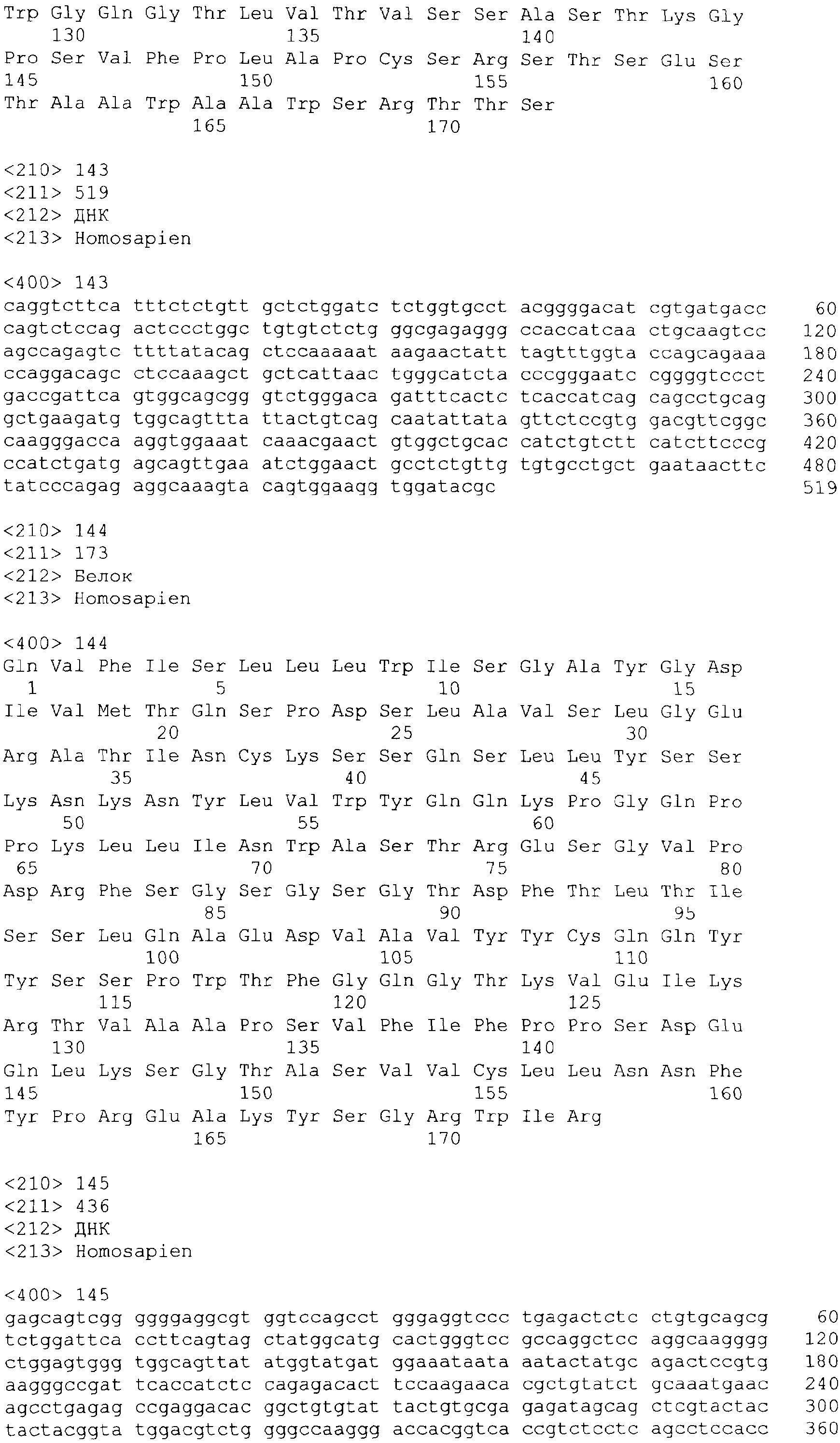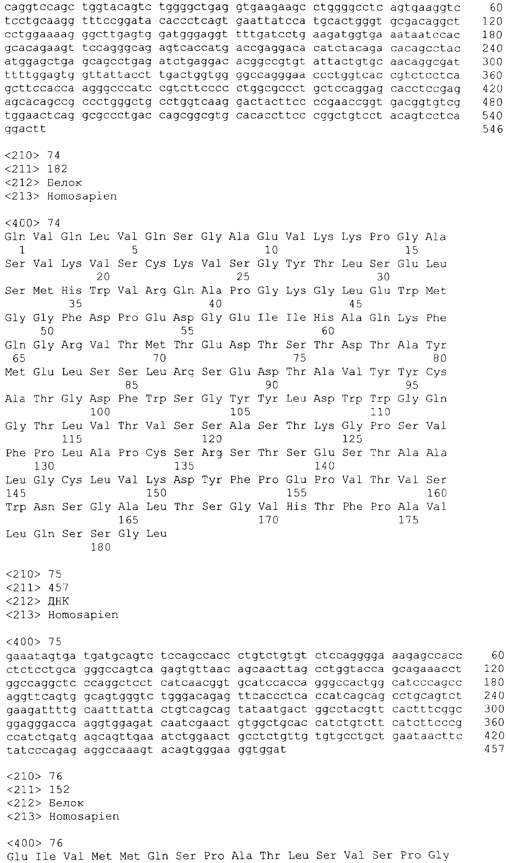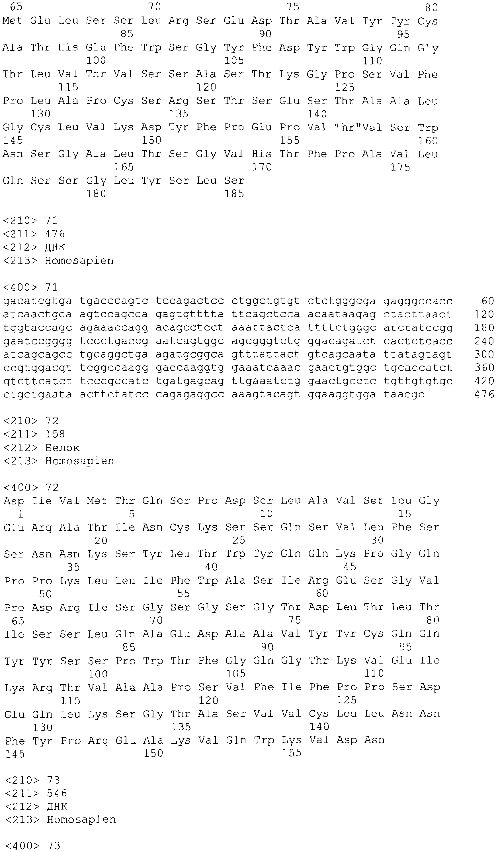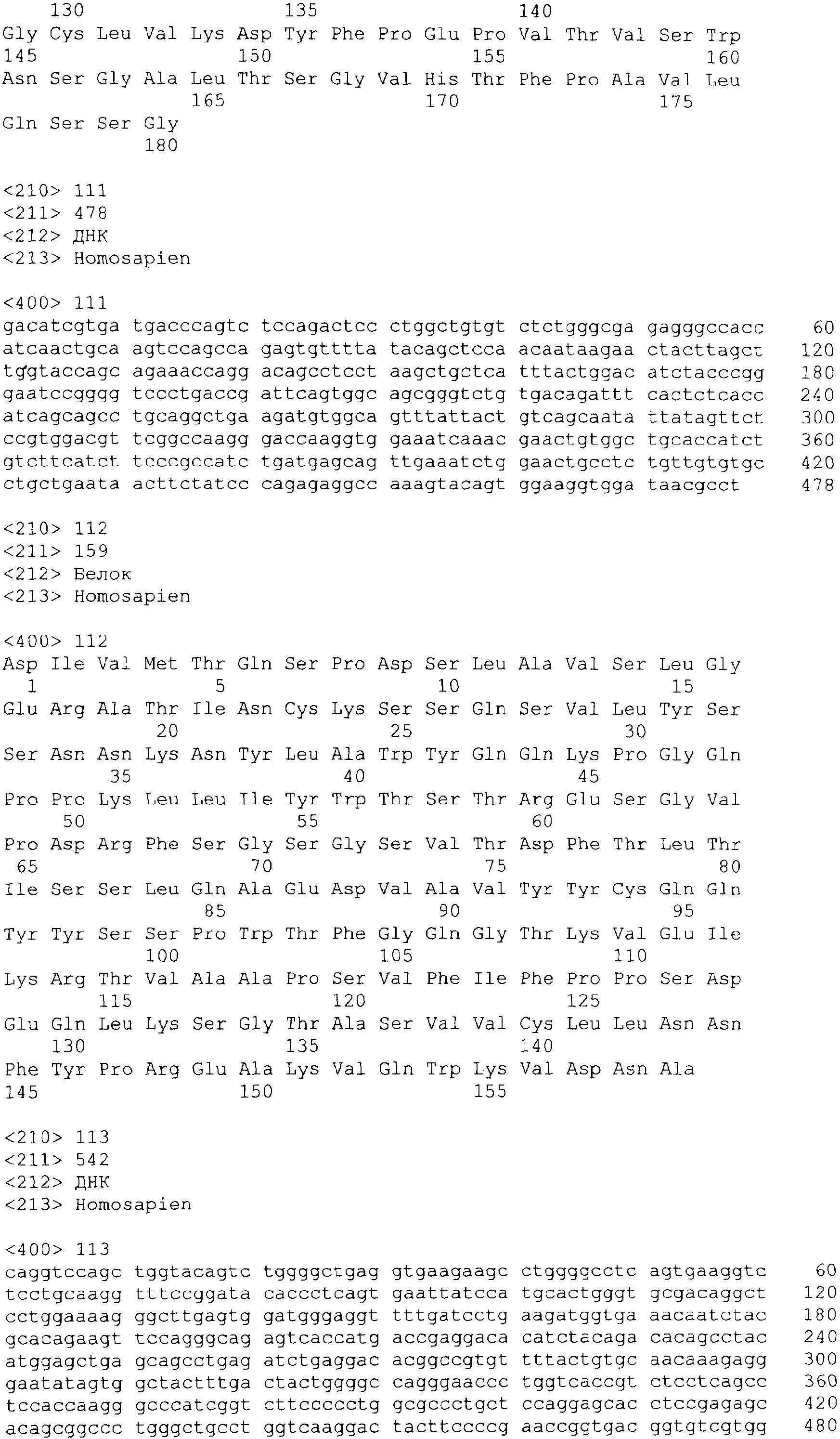 Нуклеотидные и аминокислотные последовательности вариабельной области тяжелой и легкой цепей репрезентативных человеческих анти-МСР-1 антител приводятся в нижеследующем систематизированном списке последовательностей, представленном в таблице 1.