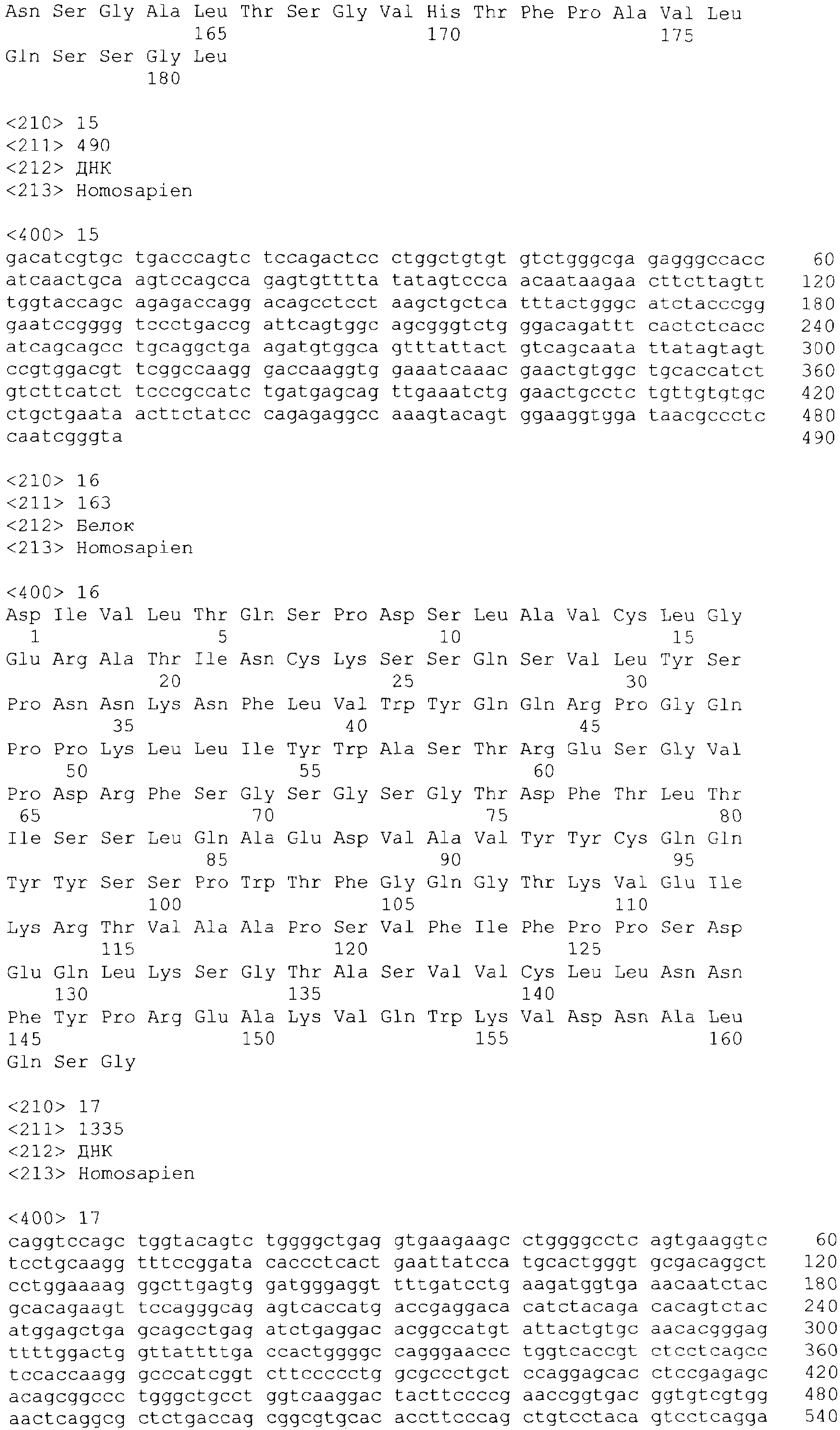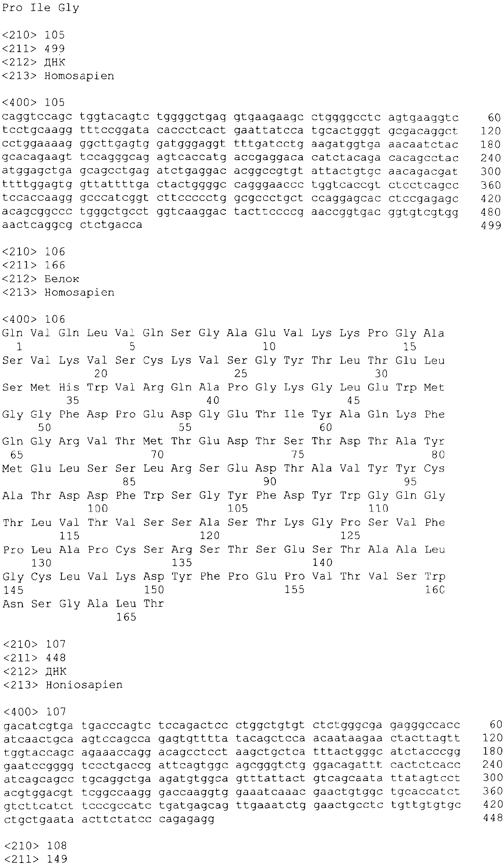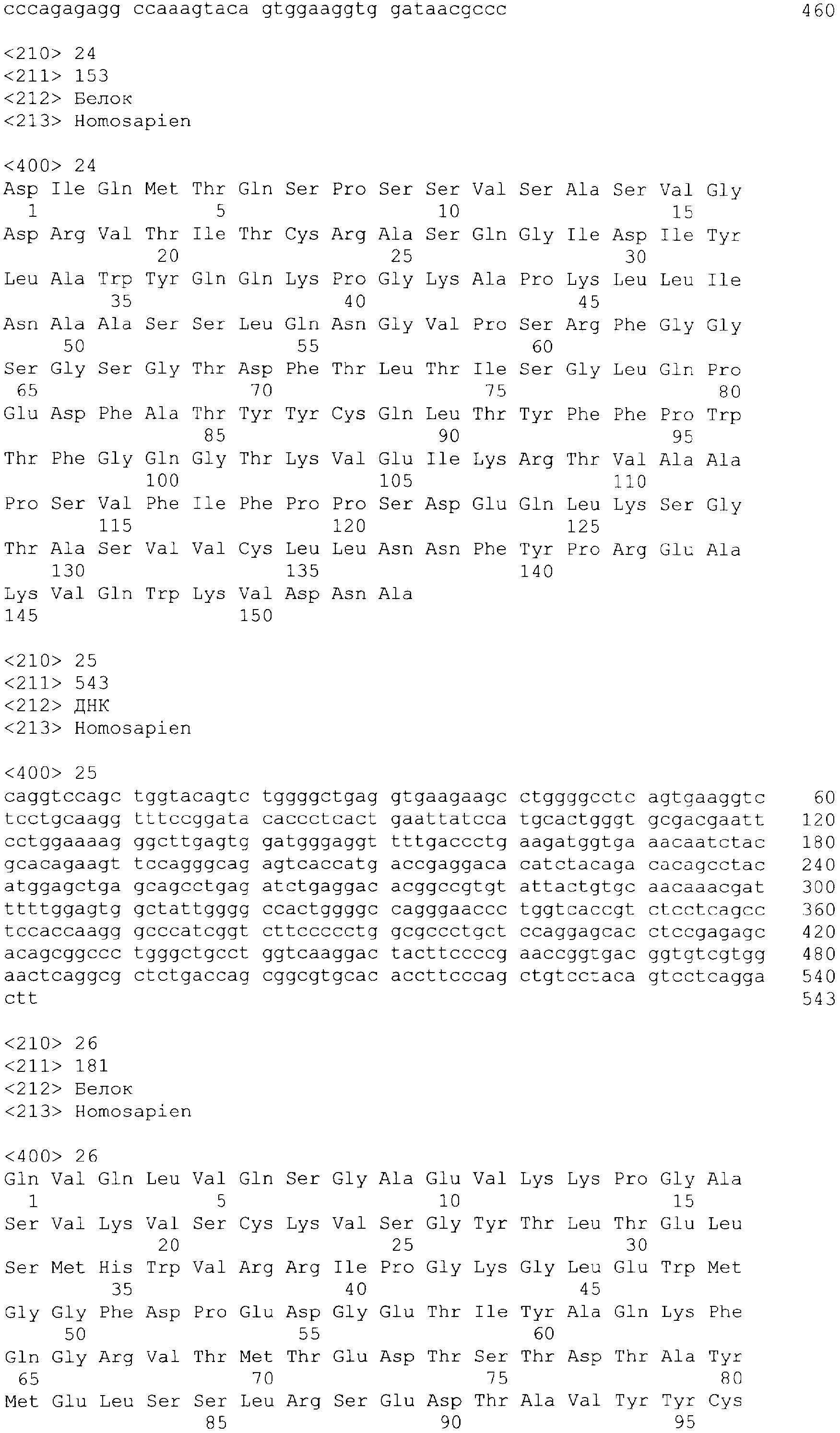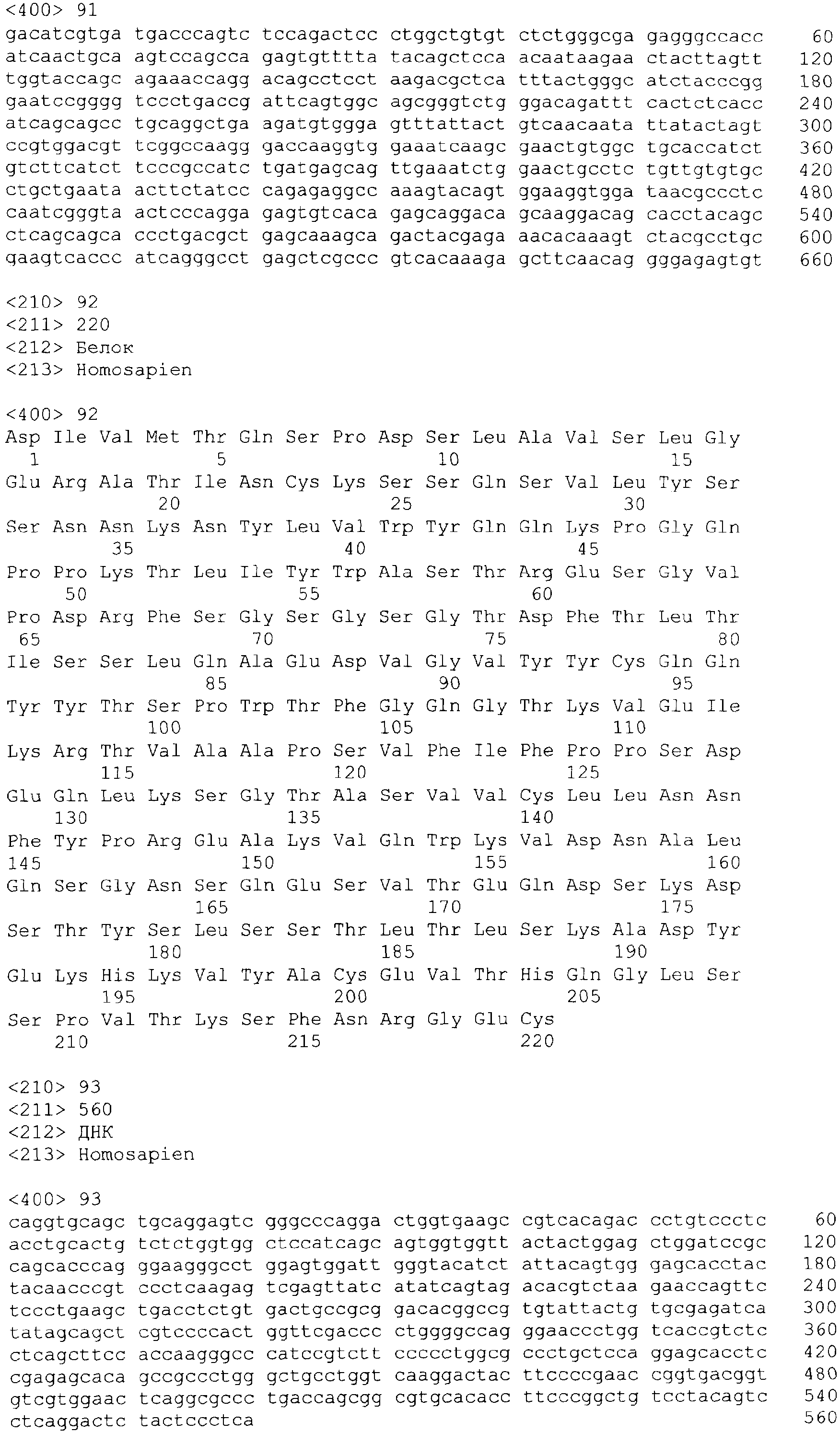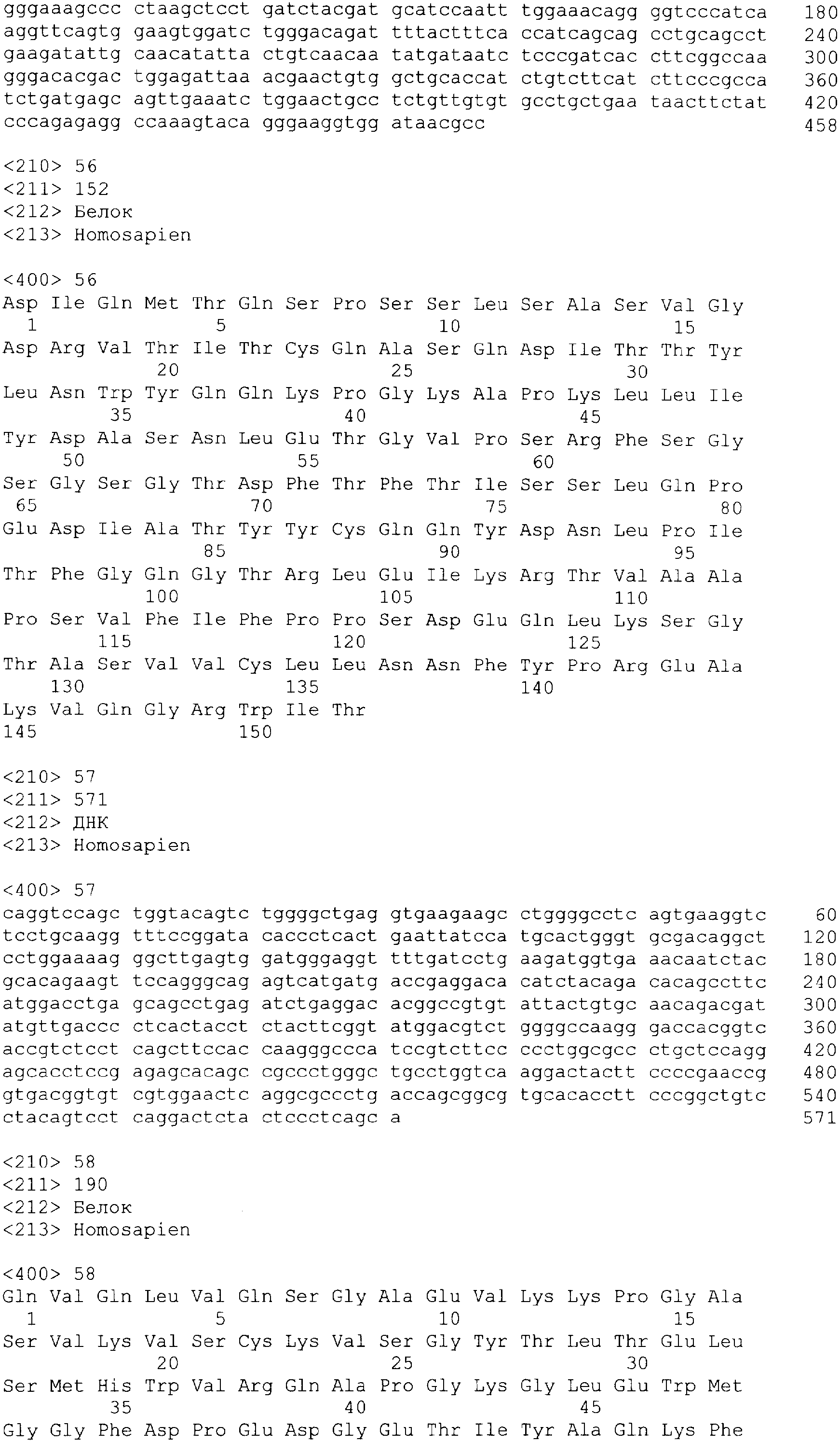 Нуклеотидные и аминокислотные последовательности вариабельной области тяжелой и легкой цепей репрезентативных человеческих анти-МСР-1 антител приводятся в нижеследующем систематизированном списке последовательностей, представленном в таблице 1.
