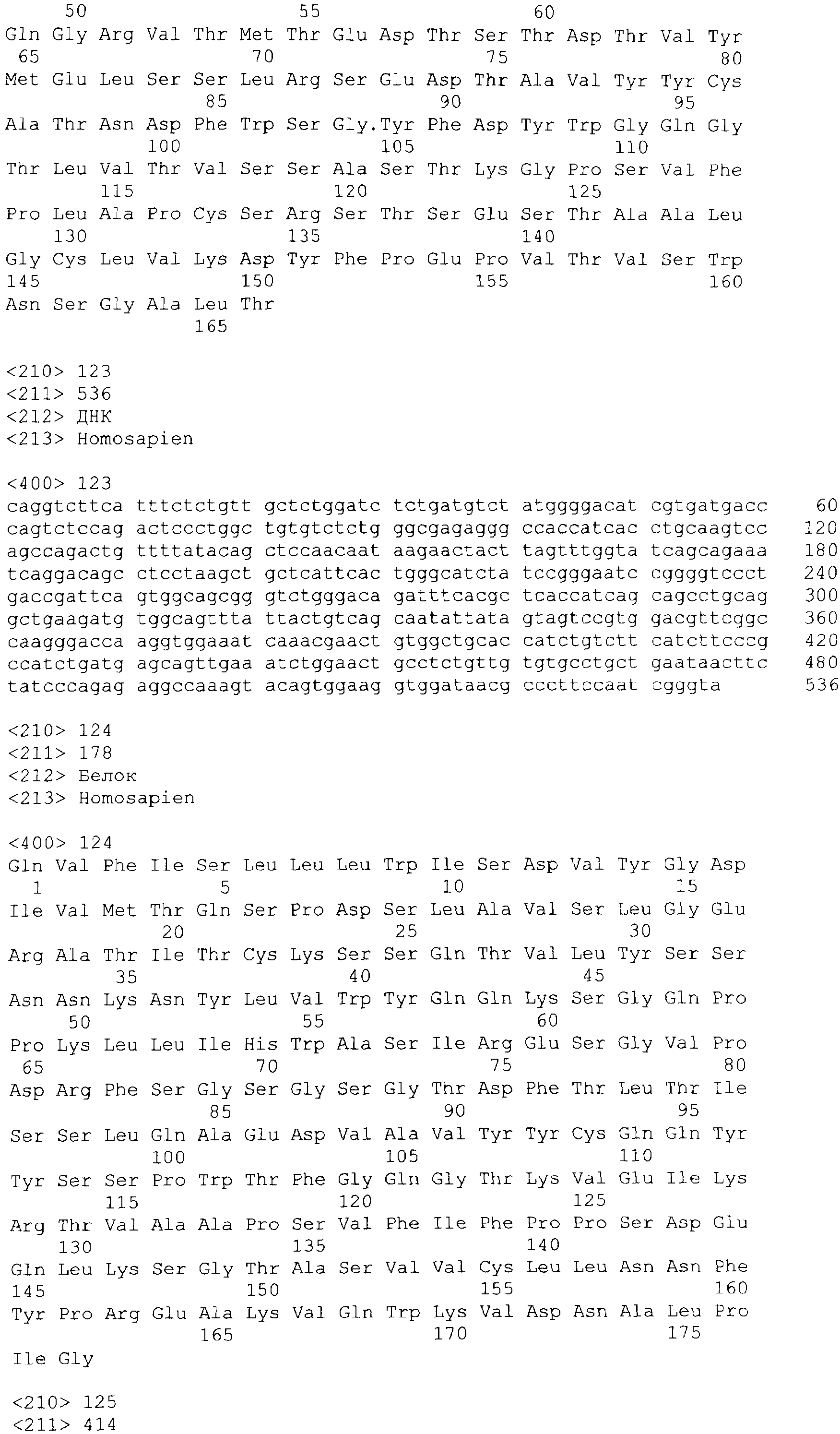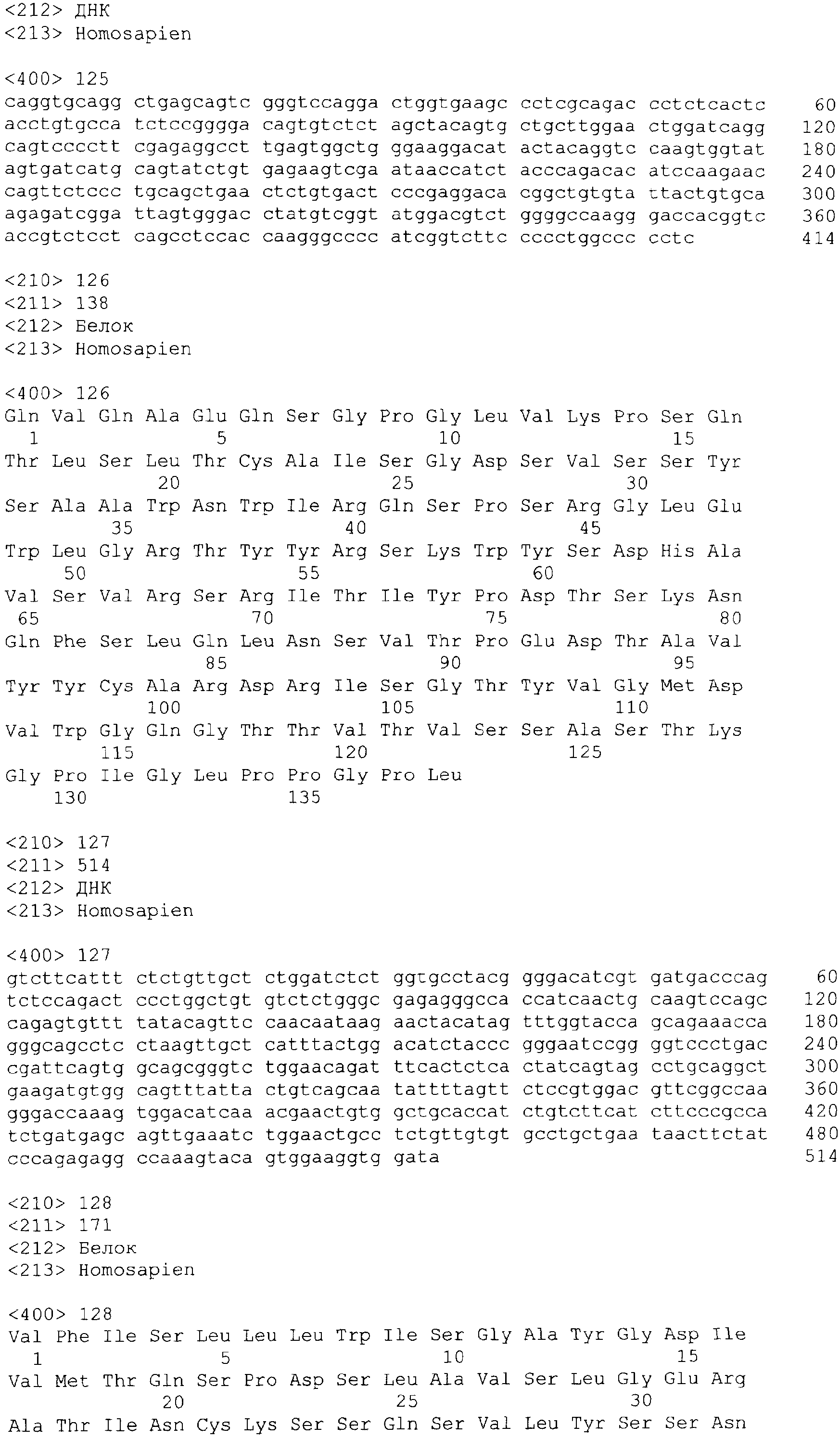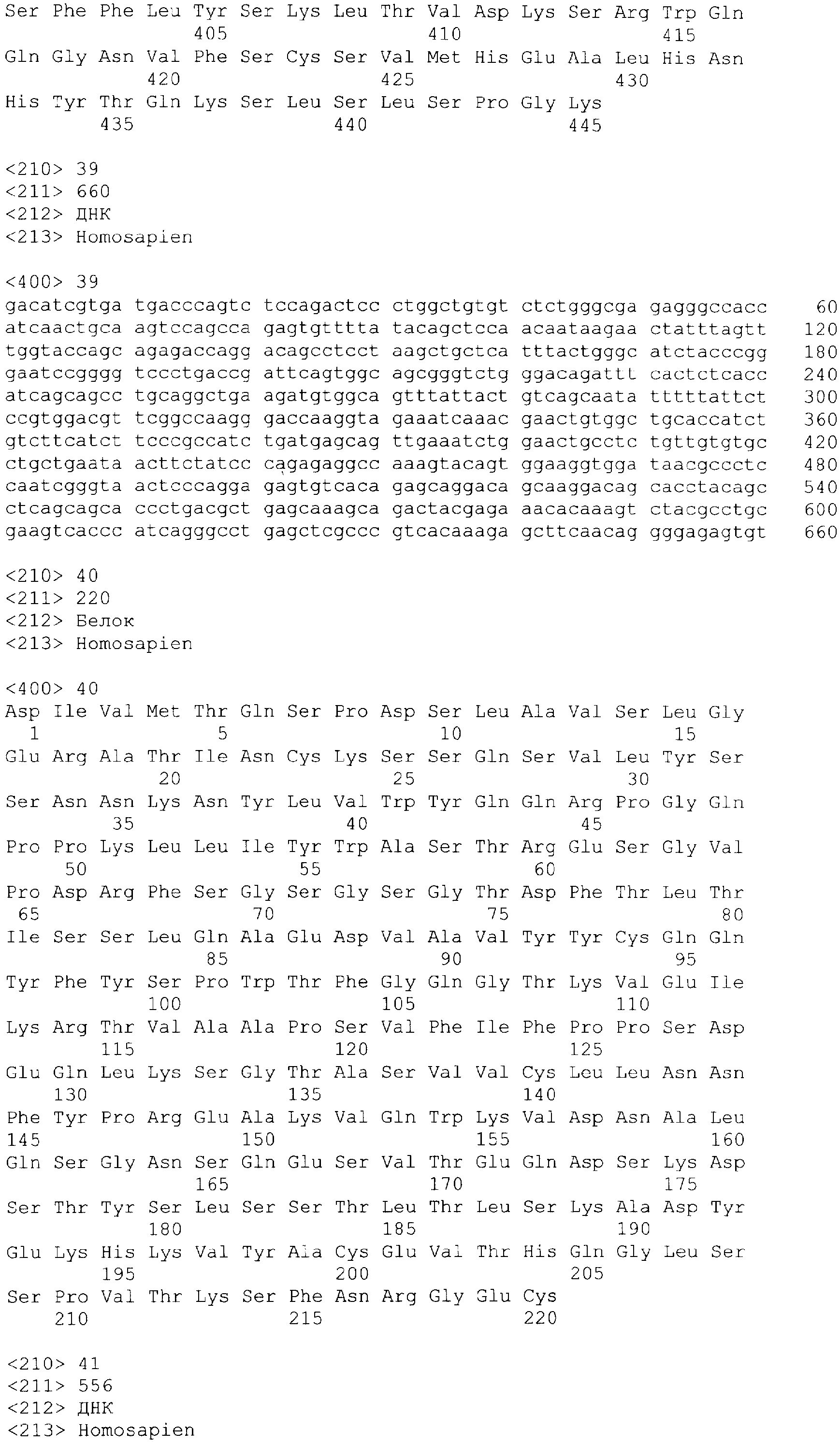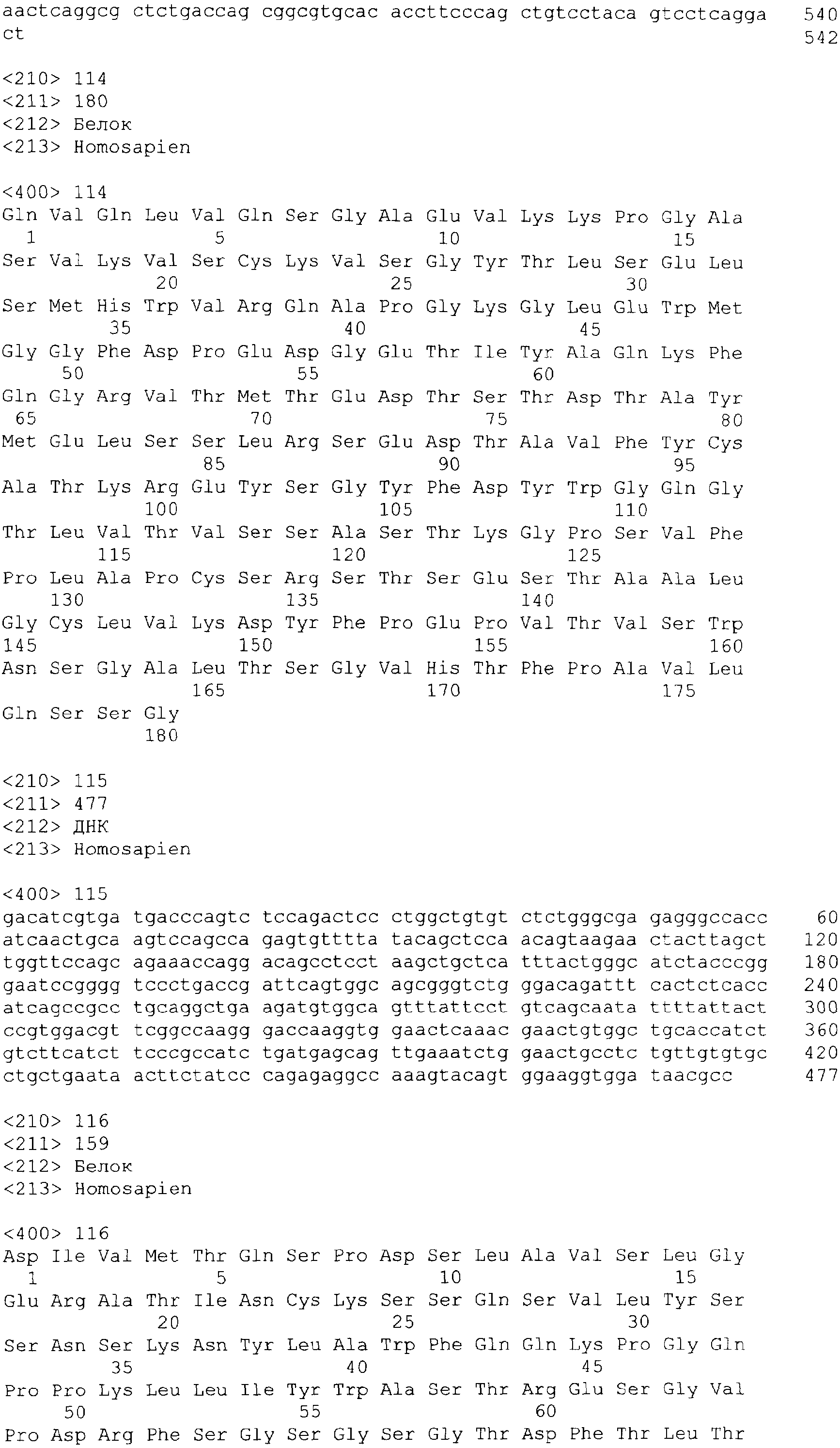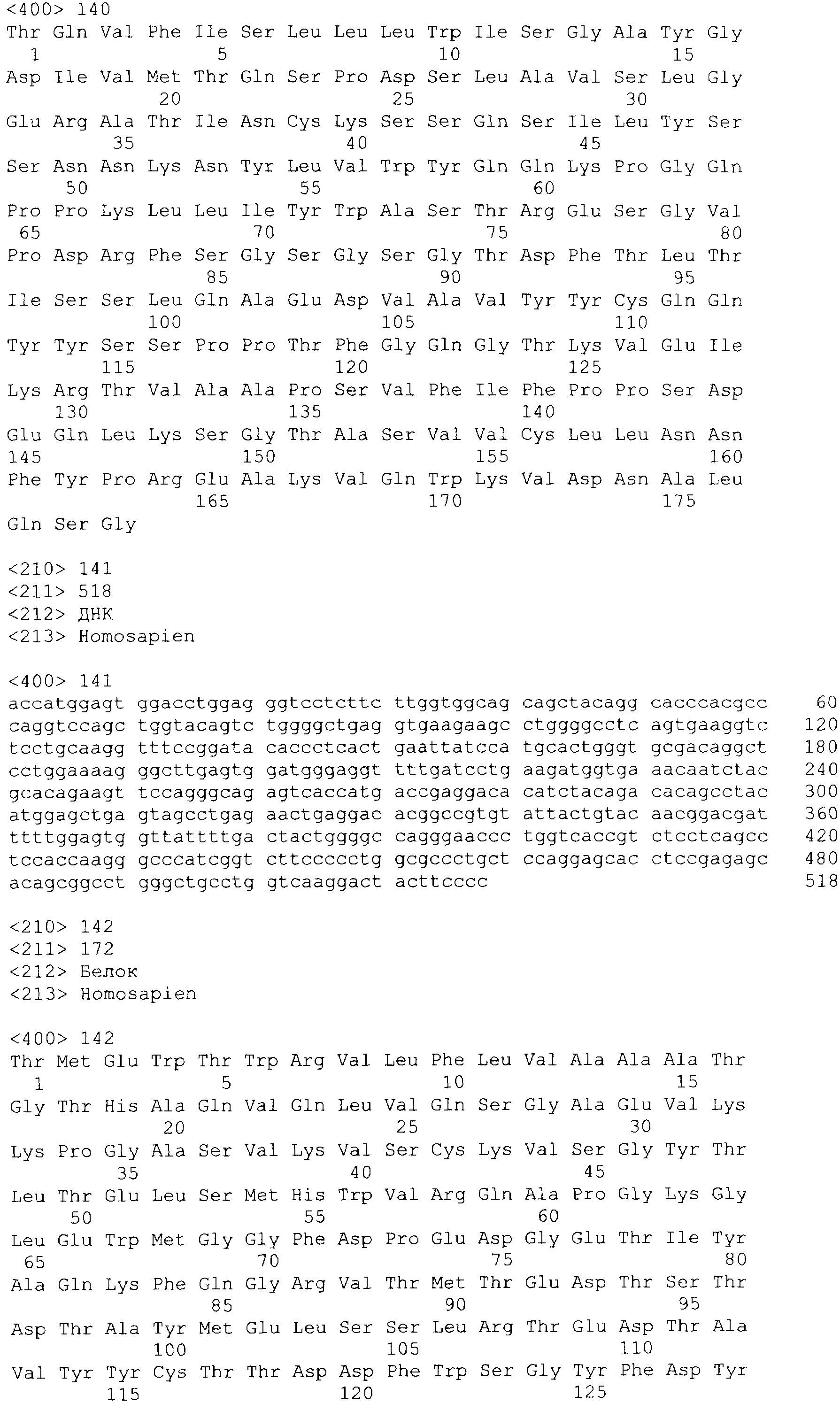 Нуклеотидные и аминокислотные последовательности вариабельной области тяжелой и легкой цепей репрезентативных человеческих анти-МСР-1 антител приводятся в нижеследующем систематизированном списке последовательностей, представленном в таблице 1.