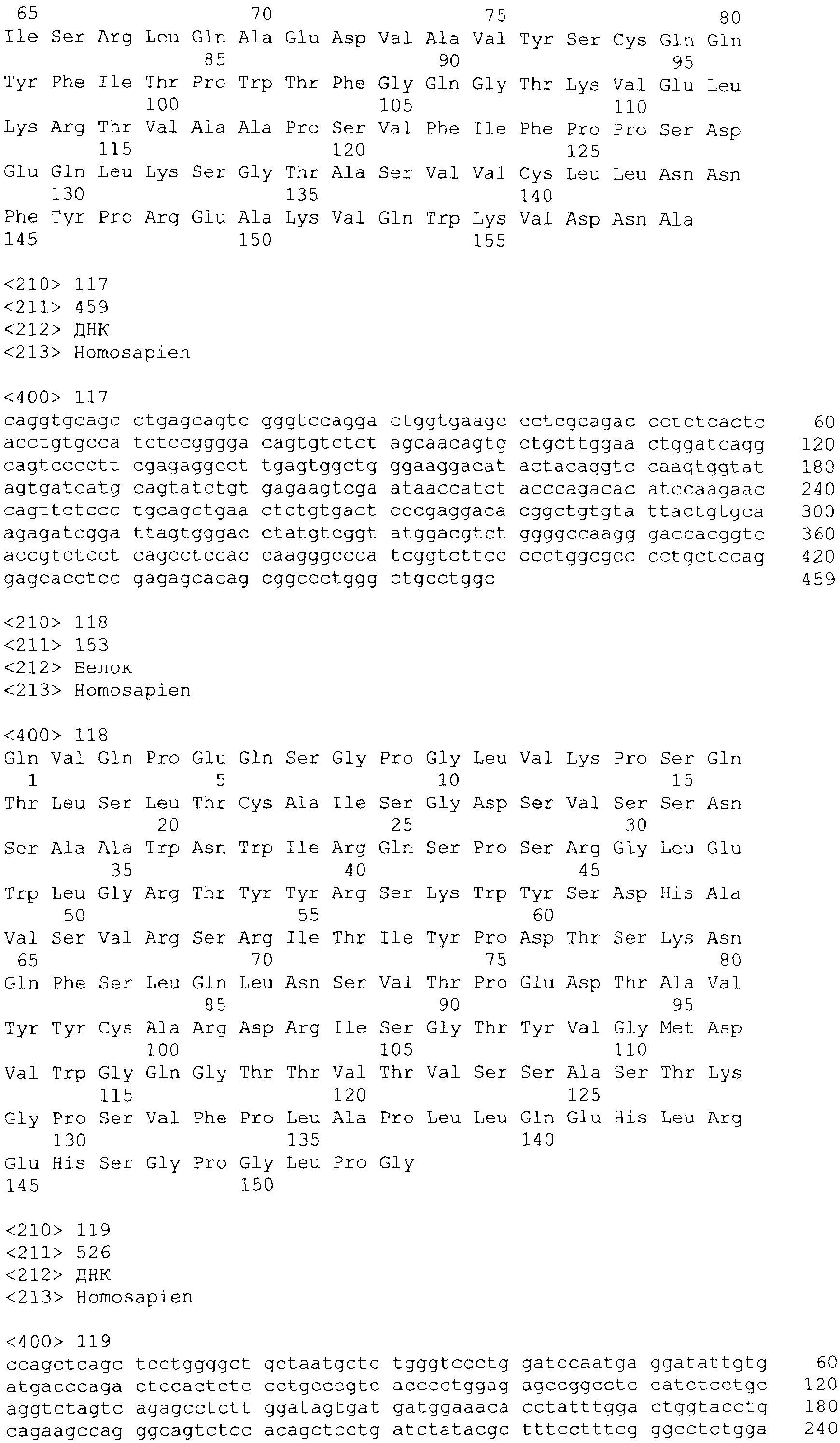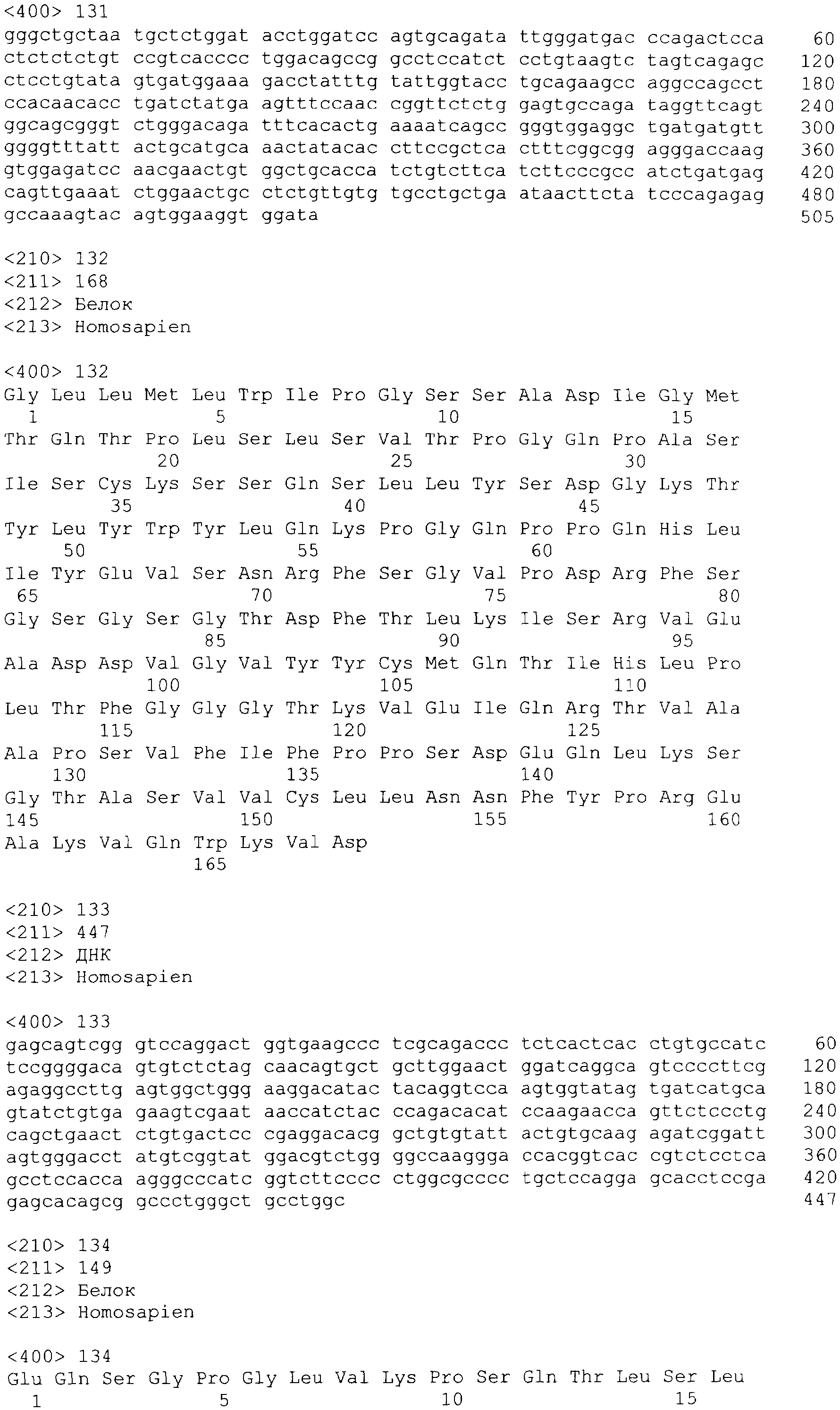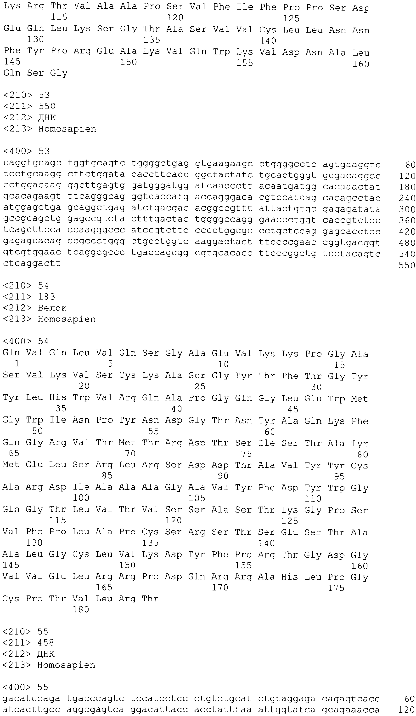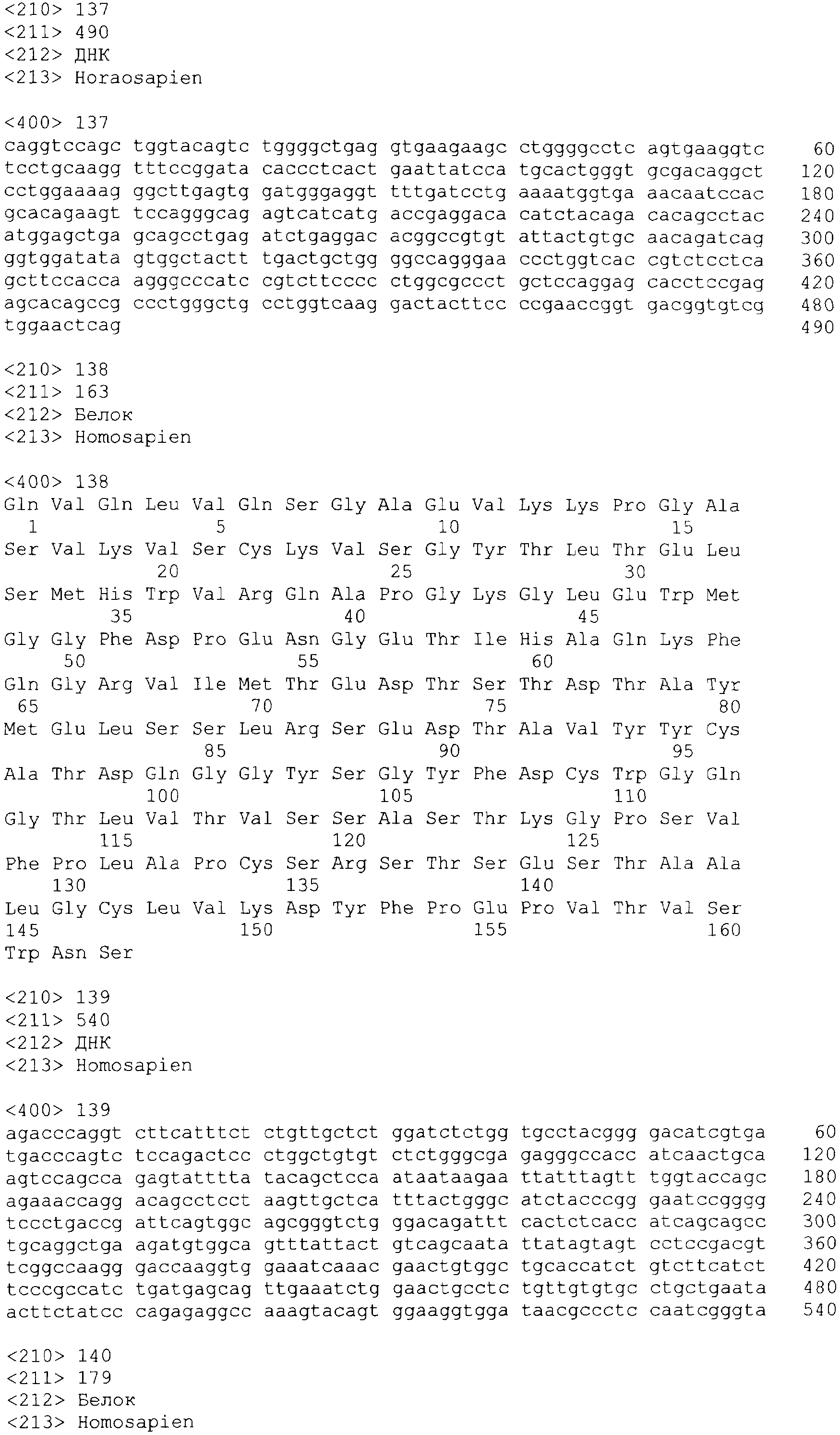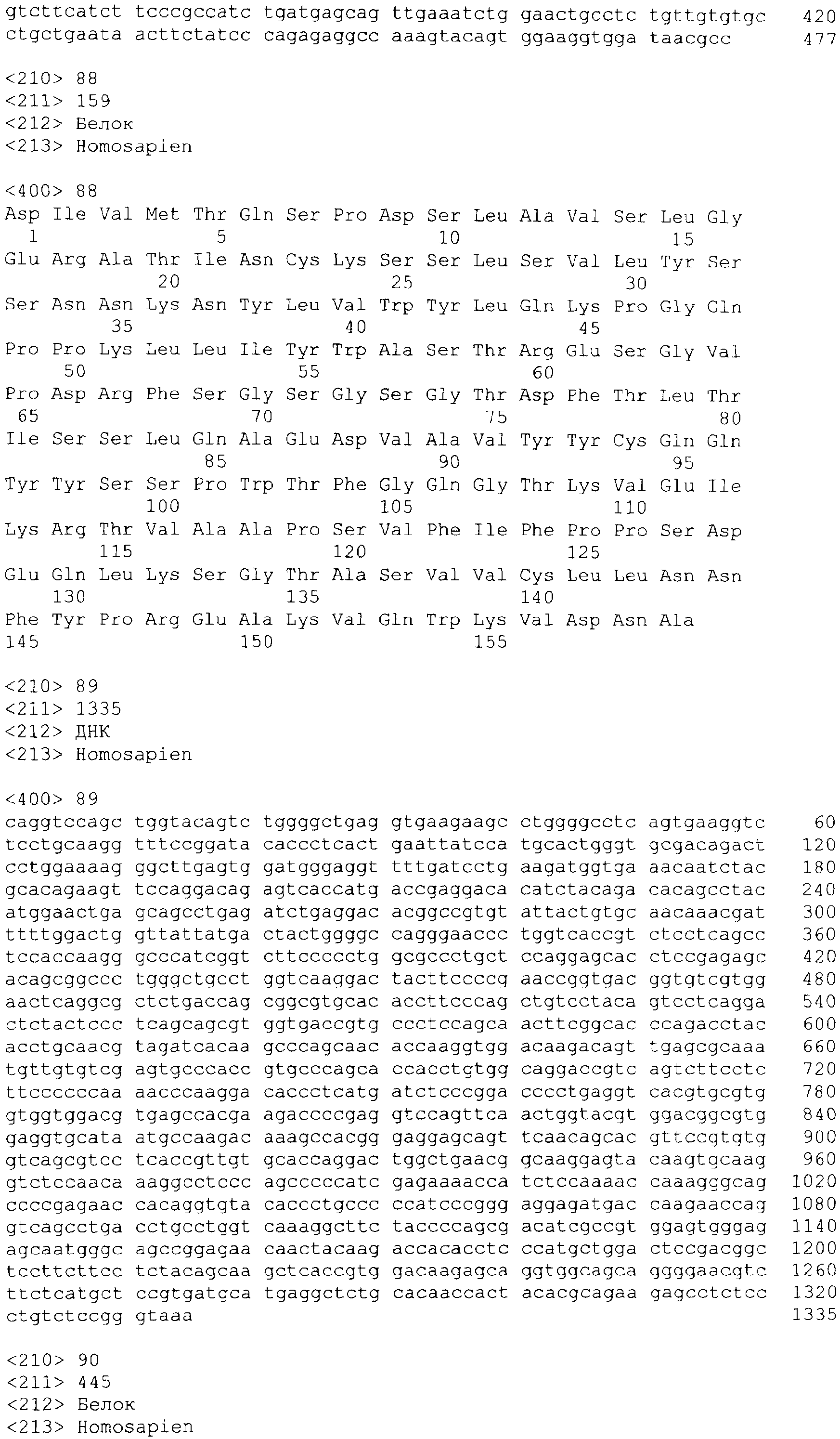 Нуклеотидные и аминокислотные последовательности вариабельной области тяжелой и легкой цепей репрезентативных человеческих анти-МСР-1 антител приводятся в нижеследующем систематизированном списке последовательностей, представленном в таблице 1.