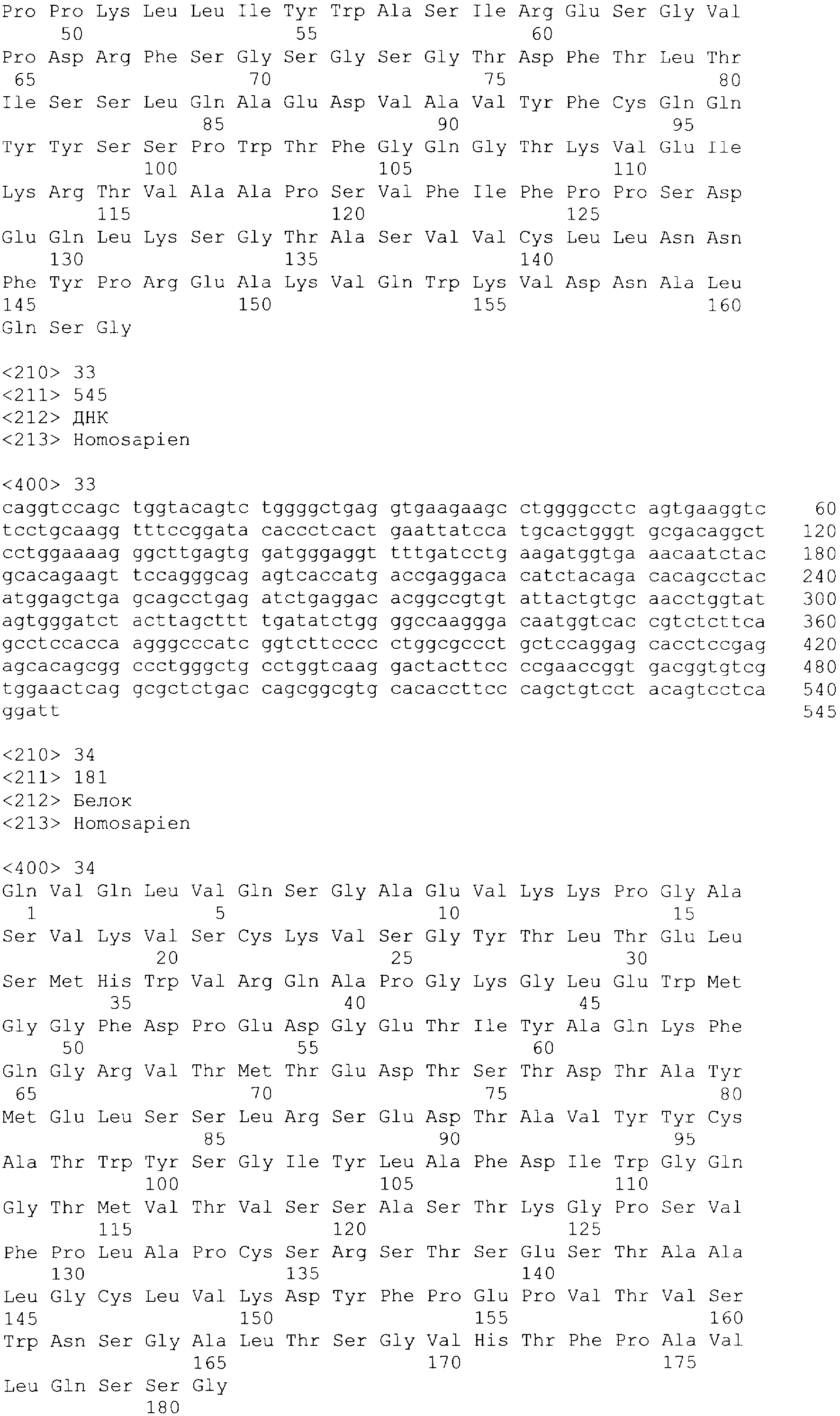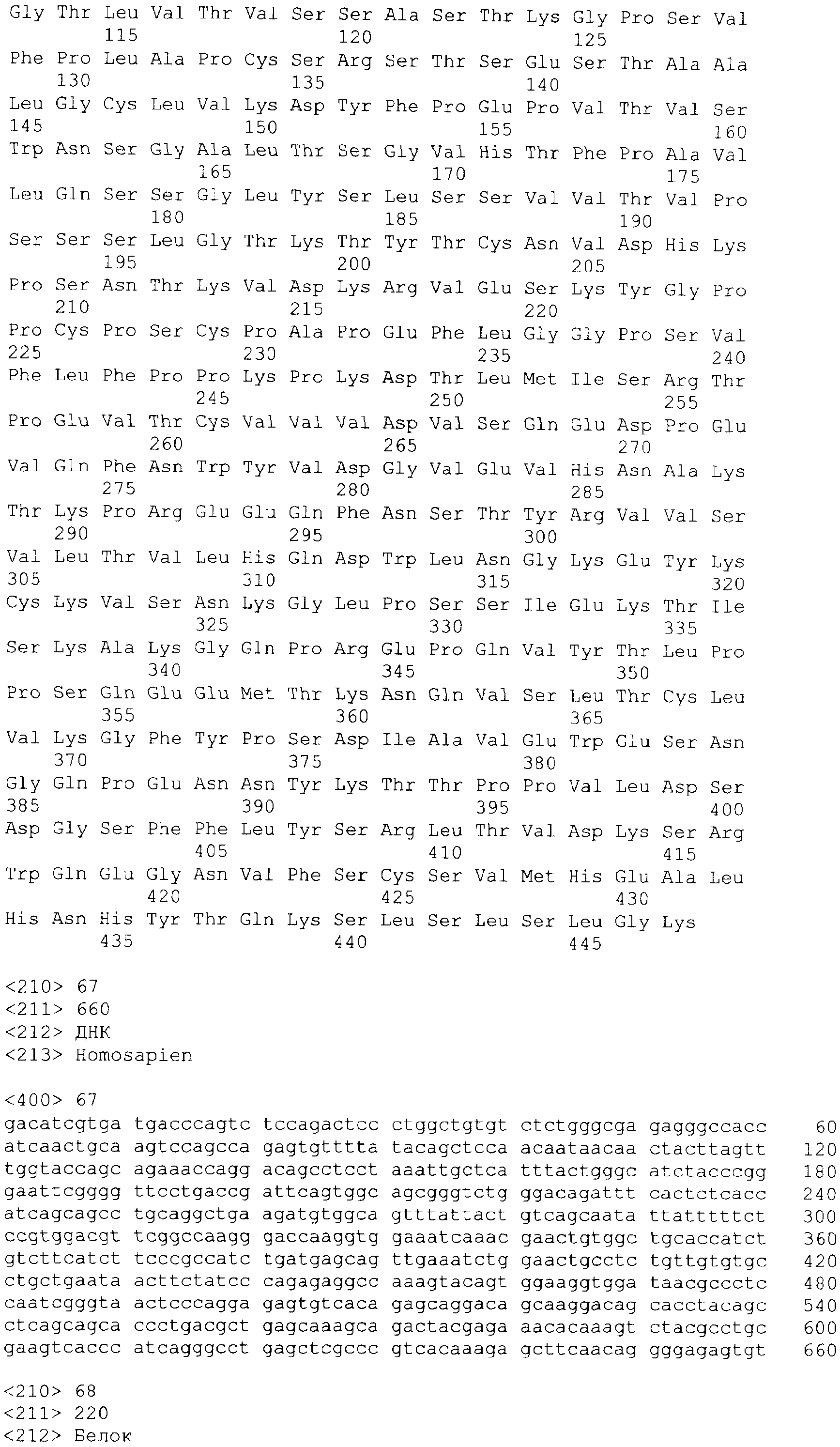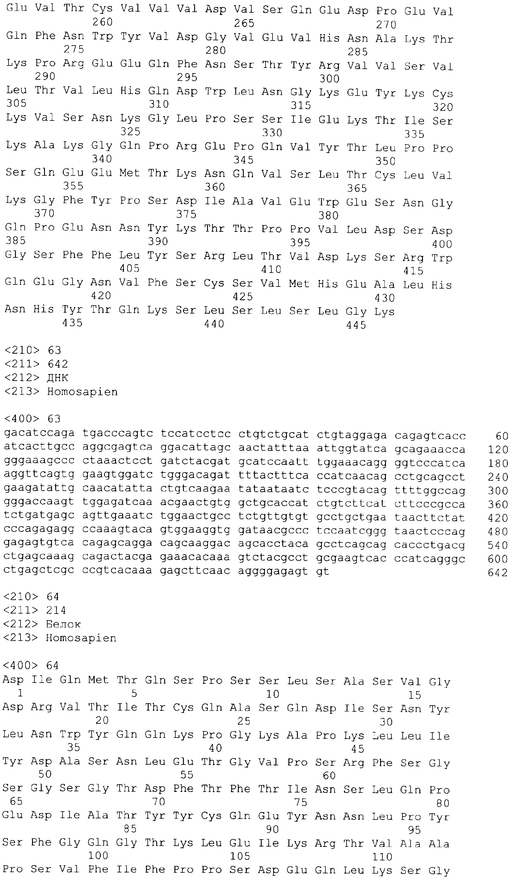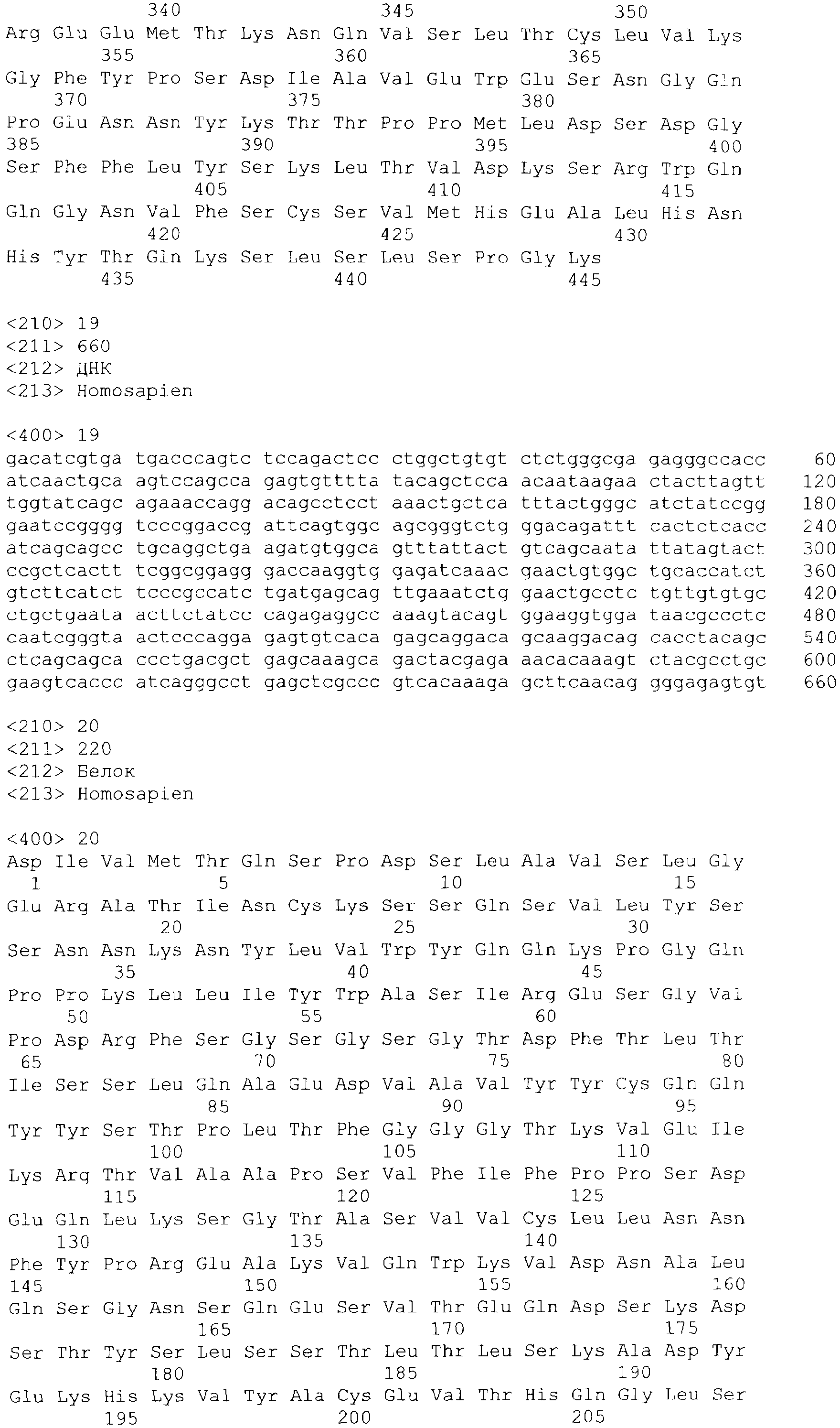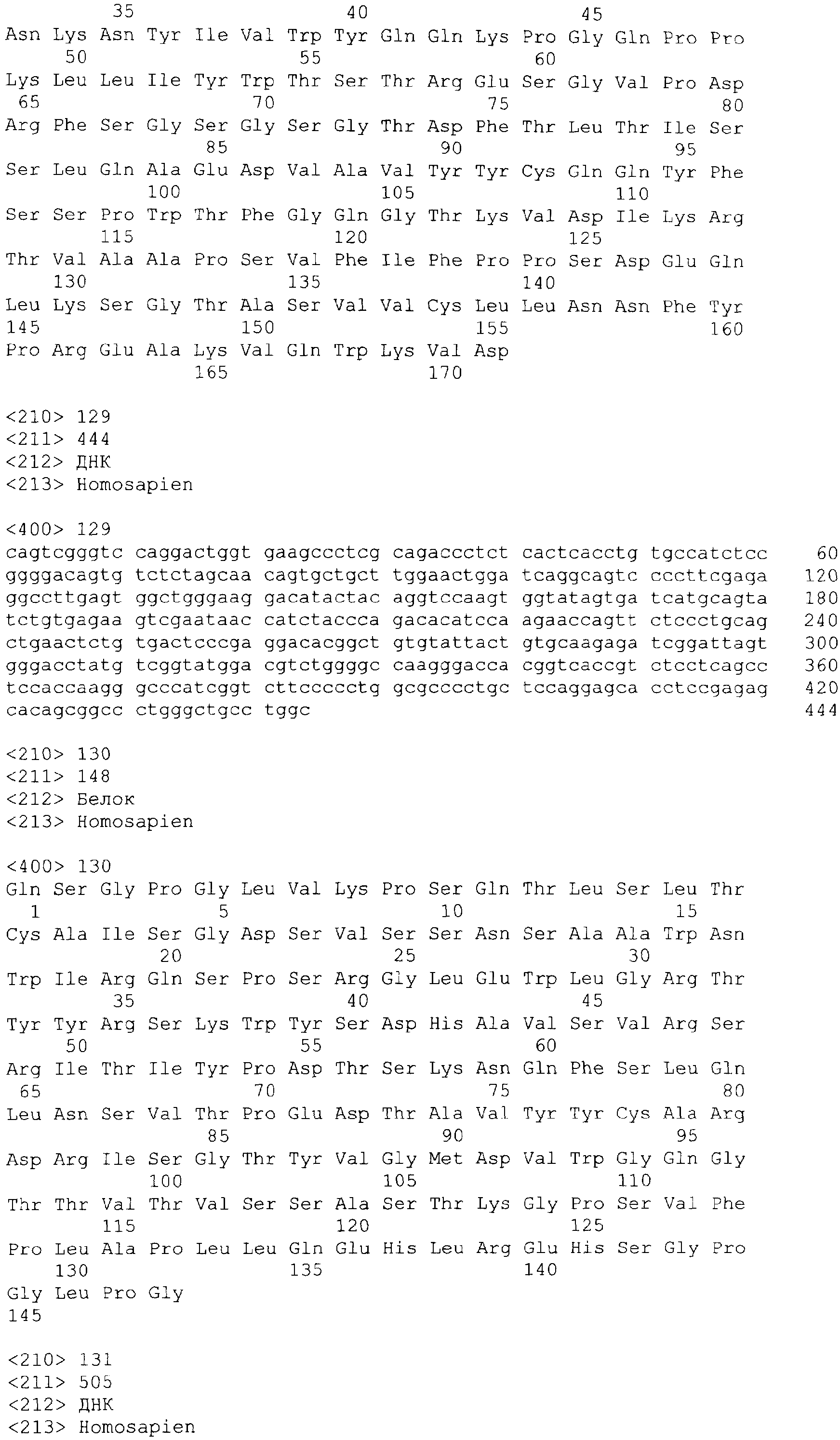 Нуклеотидные и аминокислотные последовательности вариабельной области тяжелой и легкой цепей репрезентативных человеческих анти-МСР-1 антител приводятся в нижеследующем систематизированном списке последовательностей, представленном в таблице 1.