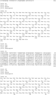 Последовательности вариабельной тяжелой цепи анализировали для определения семейства VH, последовательности D-области и последовательности J-области. Затем последовательности транслировали для определения первичной аминокислотной последовательности и сравнивали с последовательностями VH, D- и J-области зародышевой линии для оценки соматических гипермутаций. На фиг.7 проиллюстрировано сравнение, проводимое с помощью программы Clustal W, последовательностей анти-МСР-1 антител с использованием VH1-24, где указаны области CD, CDR1, CDR2 и CDR3, и представлена построенная по этим данным дендрограмма. На фиг.8 проиллюстрировано сравнение, проводимое с помощью программы Clustal W, последовательностей анти-МСР-1 антител с использованием VК-В3, где указаны области CD, CDR1, CDR2 и CDR3, и представлена построенная по этим данным дендрограмма. На фиг.9 проиллюстрировано сравнение с помощью программы, проводимое Clustal W, последовательностей анти-МСР-1 антител с использованием VК-08, где указаны области CD, CDR1, CDR2 и CDR3, и представлена построенная по этим данным дендрограмма. На фиг.10 проиллюстрировано сравнение, проводимое с помощью программы Clustal W, последовательностей анти-МСР-1 антител с использованием VH6-1, где указаны области CD, CDR1, CDR2 и CDR3, и представлена построенная по этим данным дендрограмма.