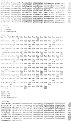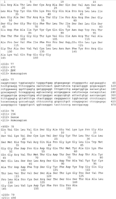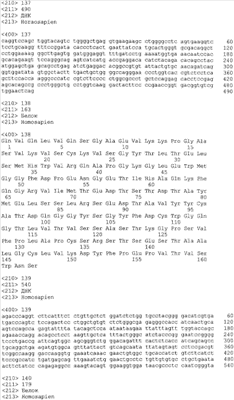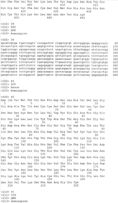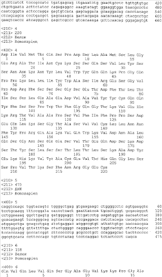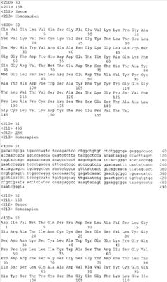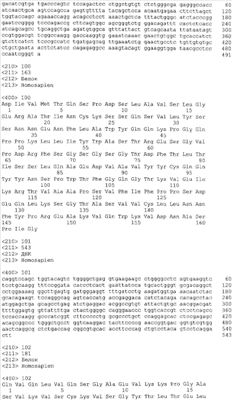 Кроме того, описанные здесь нуклеиновые кислоты и их фрагменты и варианты могут быть использованы (а) в качестве рекомбинантных или гетерологичных продуктов для направленного биосинтеза соответствующих кодируемых белков, полипептидов, фрагментов и вариантов, (b) в качестве зондов для детекции и количественной оценки описанных здесь нуклеиновых кислот, (с) в качестве матричных последовательностей для получения антисмысловых молекул и т.п., и эти их применения не ограничивается вышеуказанными примерами. Такие применения более подробно описаны ниже.