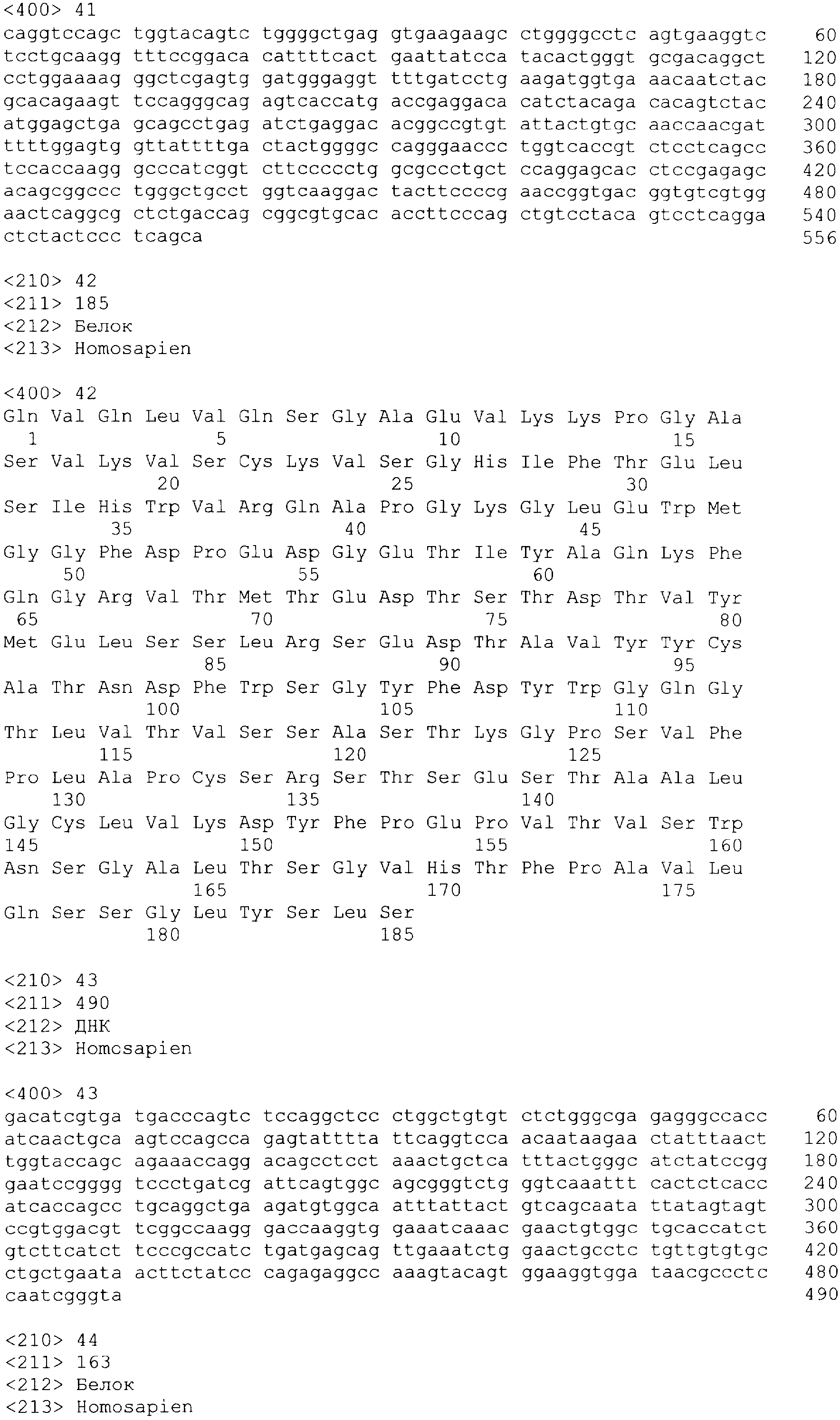 WO 0189565 A1, 29.11.2001. ROSALBA SALCEDO et al. Human endothelial cells express CCR2 and respond to MCP-1: direct role of MCP-1 in angiogenesis and tumor progression, Blood, 2000, v.96, п.1, p.34-40. WANG X. et al. Immunoglobulin VH gene expression in human aging, Clin. Immunol., 1999, v.93, n.2, p.132-142, аминокислотная последовательность под №ААС18285, GI:3170965. RU 98107631 A, 27.04.2000.