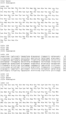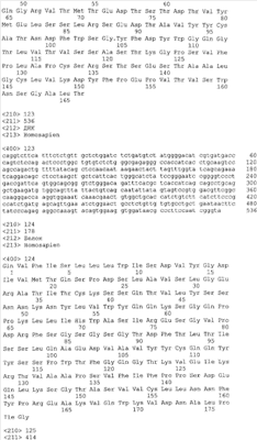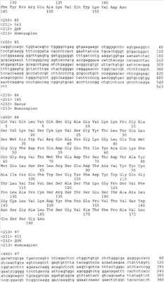 Вариабельные тяжелые цепи и вариабельные легкие цепи антител, представленных в таблице 1, секвенировали для определения их ДНК-последовательностей. Данные о полноразмерных последовательностях всех анти-МСР-1 антител приводятся в списке последовательностей вместе с нуклеотидными и аминокислотными последовательностями для каждой комбинации гамма- и каппа-цепей.