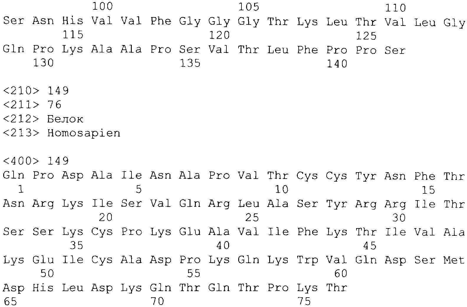 Человеческий МСР-1, хемокин СС, состоящий из 76 аминокислот и имеющий на N-конце пироглутаминовую кислоту, был впервые выделен из нескольких источников, включая стимулированные фитогемаглютинином человеческие лимфоциты (Yoshimura T. et al., J. Immunol. (1989) 142:1956-62), клеточную линию глиомы человека (Yoshimura T. et al., J. Exp. Med. (1989) 169:1449-59) и миеломоноцитарную клеточную линию человека ТНР-1 (Matsushima K. et al., (1989) J. Exp. Med. (1989) 169:1485-90). МСР-1 был впервые описан как лимфоцитарный хемотаксический фактор (LDCF). Этот белок имеет другие названия, а именно опухолевый хемотаксический фактор (TDCF), происходящий от глиомы моноцитарный хемотаксический фактор (TDCF), происходящий от глиомы моноцитарный хемотаксический фактор (GDCF), хемотаксический фактор, происходящий от клеток гладкой мышцы (SMC-CF), моноцитарный фактор активации хемотаксиса (MCAF) и CCL2. Молекулярное клонирование МСР-1-кодирующей кДНК, (Furutani Y. et al., (1989) Biochem. Biophys. Res. Comm. (1989) 169:249-55; B.J. Rollins et al., Mol. Cell. Biol. (1989) 9:4687-95; Chang H.C. et al., Int. Immunol. (1989) 1:388-97) выявило присутствие открытой рамки считывания, состоящей из 99 аминокислот, включая сигнальный пептид, состоящий из 23 аминокислот. Мышиный гомолог гена МСР-1 был обозначен JE (B.J. Rollins et al., 1989).
