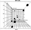На фиг.6 представлен трехмерный корреляционный график потока кальция, хемотаксиса и аффинности анти-МСР-1 антител в другой ориентации.
