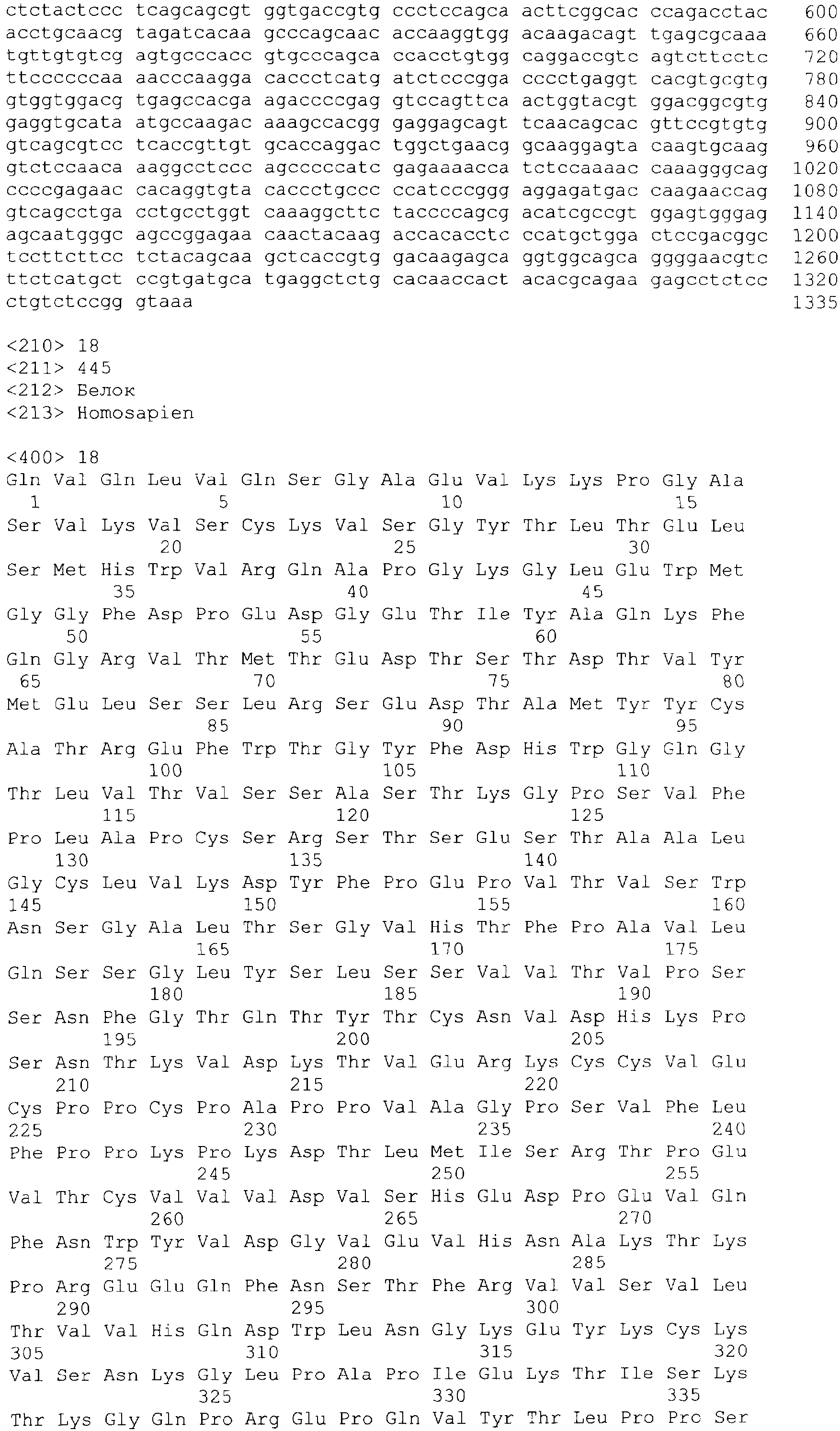 Нуклеотидная последовательность, кодирующая вариабельную область тяжелой цепи |