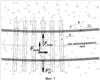 На фиг.7 представлена схема направления сил взаимодействия подвижного состава и рельсошпальной решетки в кривой. Fд уд – боковая сила динамического удара, включающая ударно-динамическое воздействие колеса на головку рельса, направлена, как правило, от центра кривой наружу и стремится сдвинуть рельсошпальную решетку. Fсопр – суммарная сила сопротивления сдвигу рельсошпальной решетки, включающая силы трения подошвы и боковых поверхностей шпал о балласт, силы торцевого сопротивления сдвигу, направлена в сторону, противоположную силе динамического удара Fд уд. В случае, когда боковая сила динамического удара Fд уд больше суммарной силы сопротивления сдвигу рельсошпальной решетки Fсопр, происходит ее сдвиг в поперечном направлении.