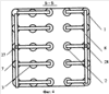 На фиг.1, 2 представлен общий вид предлагаемого мультитеплотрубного двигателя, на фиг.3 – внутренняя поверхность испарительных гильз 3, на фиг.4 – план размещения гильз 3 и распределительных коллекторов 7 и 8, на фиг.5 – нижняя поверхность испарительной камеры 2.