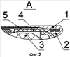 РДТТ состоит из камеры 1, соплового дна 2, заряда с частично забронированной наружной поверхностью 3. На сопловом дне 2 в районе его стыка с камерой 1 напротив небронированной части заряда 3 установлен экран 4 из теплозащитного материала таким образом, что между камерой 1 и сопловым дном 2 образуется полость 5, представляющая собой застойную зону.