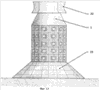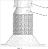 В одном из вариантов (Фиг.11) башня 1 расположена на высоте от уровня поверхности земли или уровня поверхности моря, то есть на расстоянии приблизительно в пятьдесят метров, где чаще всего имеет место необходимая постоянная скорость внешнего ветрового потока. Также башня 1 может быть расположена (Фиг.12) над зданием 29, при этом нижнее сечение первого вертикального канала 2 ПВВП соединено с внутренним объемом здания.
