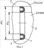 4. Узел уплотнения, содержащий тороидальный уплотнительный элемент, размещенный между уплотняемыми элементами, отличающийся тем, что уплотнительный элемент выполнен с поперечным сечением в форме полукольца, в полости которого установлены два пружинных разрезных кольца разного диаметра, взаимодействующих со стенками уплотнительного элемента, причем наружный диаметр большого разрезного кольца Dк и внутренний диаметр меньшего разрезного кольца dк в свободном состоянии определяются, соответственно, по формуле