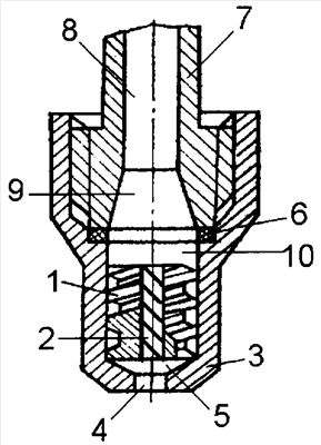 Шнек 1 форсунки может быть выполнен из твердых материалов: карбида вольфрама, рубина, сапфира.