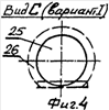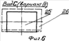 Емкость 18 в промежуточном устройстве 7 (фиг.2 и 3) состоит из отделения 20 нахождения (и приема) расплава металла и шлака, поступающего из плавильного агрегата, и из отделения 21 выпуска металла. Отделение 20 (нахождения расплава) в верхней части снабжено открытым боковым каналом 22 для выпуска потока 16 шлака, отделение 21 (выпуска металла) снабжено выпускном каналом 23 (фиг.3). Вход в выпускной канал 23 поднят над дном 24 емкости 18 на величину h1. Вход в боковой канал 22 поднят над этим дном 24 на величину h2. Значение h1 максимально приближено к значению h2, но предпочтительно h12 на величину +l·tg , где l – расстояние от входа в открытый боковой канал 22 до противоположной от этого канала стороны промежуточного устройства, взятого по наружной его части (об угле – см. ниже). Значение выбирается на основе промышленного применения промежуточного устройства 7 и в последующем поддерживается. Указанные отделения емкости 18: нахождения (и приема) расплава 20 и отделение 21 выпуска металла из промежуточного устройства 7 соединены между собой каналом 25, расположенным в нижней части емкости 18. Поперечное сечение канала 25 может иметь форму круглого отверстия (фиг.4), арки (фиг.5), квадрата (прямоугольника) на фиг.6.