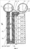 Отношение суммарной длины l” прямолинейных ветвей 14, 15 теплообменных труб 9, обтекаемых в поперечном направлении, к суммарной длине L [м] всех теплообменных труб 9 пучка 8 составляет 0,78-0,92. Внешняя 19 и внутренняя 20 трубы в каждом ряду 10 пучка 8 содержат каждая не менее одного гиба 12 длиной, равной R, а гибы 13 остальных труб 9 во всех рядах 10 пучка 8 выполнены длиной, равной . Внешняя труба 19 каждого из рядов 10, имеющих большее число труб 9, чем в смежных с ним рядах, имеет один гиб 12 длиной R, образующий колено 17, соединяющее внутренние ветви 15 этой трубы 9, а общее число гибов 12, 13 этой трубы равно пяти. Внутренняя труба 20 каждого из рядов 10, имеющих большее число труб 9, чем в смежных с ним рядах, имеет два гиба 12 длиной R, каждый из которых образует колено 16, 18, соединяющее соответствующие внутреннюю 15 и внешнюю 15 ветви этой трубы 9, а общее число гибов 12, 13 у этой трубы 9 равно четырем. Шаг а между продольными осями смежных труб 9 прямолинейных ветвей 14, 15 составляет (1,5-2,5)d, где d – наружный диаметр теплообменной трубы 9. Шаг b между осями смежных труб 9 на прямолинейных участках – вставках 21 колен 16-18 составляет (1,8-2,8)d. В каждом ряду 10 шаг а между продольными осями смежных труб прямолинейных ветвей 14, 15 меньше или больше, чем шаг b между продольными осями колен 16-18 смежных труб 9, предпочтительно а3, теплообменные трубы в смежных по высоте рядах размещены в шахматном порядке со смещением на (0,4÷0,6)a [м], где а – шаг между продольными осями смежных труб на прямолинейных ветвях 14, 15 одного ряда 10 [м], при этом количество труб 9 в блоке 1 составляет предпочтительно 263-563 шт.,>