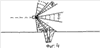 – траекторный разрыв на подлете к цели (в упрежденной точке) с поражением цели осевым потоком ГПЭ (фиг.1, 3). Детонационная волна от донного взрывателя 3 падает на осколочный блок и сообщает ему осевую скорость при этом осевой заряд блока не детонирует, а разрушается как инертное тело. При разрушении осевого заряда возникает радиальное течение ГПЭ к оси, что увеличивает плотность осевой части потока (на фиг.3 – I – осевое поле ГПЭ, II – круговое поле осколков естественного дробления корпуса снаряда). Показан случай стрельбы из танка по расчету ПТУР;