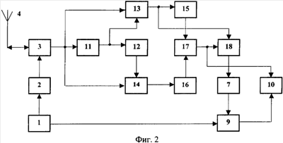 – изменение фазы, вызванное деформацией мембраны 16, выделяется непосредственно из самого принимаемого ФМн-сигнала. Для этого используется удвоитель 5 фазы, делитель 6 фазы на два и узкополосный фильтр 7.