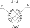 на фиг.3 – поперечный разрез А-А корпуса по фиг.1 в форме треугольника с вогнутыми гранями (вариант исполнения).