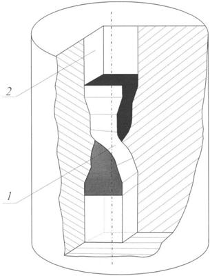 Поставленная задача достигается тем, что в известном способе комбинированной интенсивной пластической деформации заготовок, заключающемся в выдавливании заготовки через сужающуюся среднюю часть канала, согласно изобретению заготовка дополнительно подвергается деформации кручением в сужающейся средней винтовой части канала.