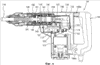 Механизм 117 передачи мощности включает ведущее зубчатое колесо 121, приводимое в действие приводным электродвигателем 111, передаточное зубчатое колесо 131, входящее в зацепление с ведущим зубчатым колесом 121, передаточный вал 133, вращающийся в горизонтальной плоскости вместе с передаточным зубчатым колесом 131, малое коническое зубчатое колесо 134, установленное на передаточном валу 133, большое коническое зубчатое колесо 135, входящее в зацепление с малым коническим зубчатым колесом 134, и держатель 137, вращающийся вместе с большим коническим зубчатым колесом 135 в вертикальной плоскости. Бурильный молоток 101 может быть переключен между режимом ковки и режимом ударного бурения. В режиме ковки бурильный молоток 101 выполняет ударное действие на обрабатываемой детали, прилагая только ударную силу к ударному долоту 119 в его осевом направлении. В режиме ударного бурения бурильный молоток 101 выполняет операцию ударного бурения на обрабатываемой детали, прилагая ударную силу в осевом направлении и силу вращения в направлении по окружности к ударному долоту 119. Эта конструкция бурильного молотка 101 прямо не связана с настоящим изобретением и, таким образом, не будет описана с дальнейшей детализацией. Обрабатываемая деталь на чертежах не показана.