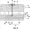 4. Пресс-форма по п.1, отличающаяся тем, что выводящая трубка (50) в отведенном положении образует по меньшей мере один воздуховод (I, II), имеющий ширину от примерно 0,03 до 0,05 мм.