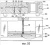 Фиг.10 представляет условный, частично в разобранном состоянии, частично в разрезе, вид предпочтительного варианта осуществления, показывающий, как воздух выдувают из полости пресс-формы.