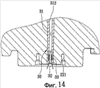 Фиг.14 представляет собой частичный вид в разрезе предпочтительного варианта осуществления, показывающий выводящее расположение выводящего стержня.