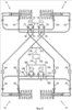 На фиг.11 показан предпочтительный вариант выполнения гидравлической системы. Эта система является аналогичной другим раскрытым системам, но показывает возможную модификацию, когда каждый клапан демпфирования рассматривается в качестве, по меньшей мере, одного ограничения единственного направления, как указывалось выше применительно к фиг.1. Символ ограничения с параллельным обратным клапаном, используемый на этой фигуре, обычно используется для обозначения базового клапана двойного трубчатого демпфера. Эти базовые клапаны имеют выводную трубу клапана на одной стороне корпуса демпфера и упругую пластину ввода на другой стороне корпуса демпфера, при этом пластина ввода действует в качестве обратного клапана. Ограничение может быть любого типа, таким как простое отверстие, многоступенчатым, изменяемым или переключаемым.