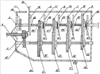 Кроме того, в центре шестерни расположено отверстие с резьбой. Диаметр отверстия и параметры резьбы должны соответствовать диаметру и параметрам резьбы резьбовой зоны на соответствующем участке ведомого вала, чтобы шестерня могла, как гайка, накручиваться на резьбовую зону, а в гладкой зоне свободно перемещаться по ее длине, причем свободно вращаясь на валу. Шестерня ведомого вала со стороны, противоположной фрикционной, содержит вилку, которая одним концом закреплена на ведущей шестерне, а другим концом – на ведомой шестерне. Вилка необходима для того, чтобы обеспечить только одновременное перемещение ведущей и ведомой шестерни вдоль осей ведущего и ведомого валов, и в то же время вилка не препятствует вращению шестерен ведущего и ведомого валов вокруг осей валов. Кроме того, вилка обеспечивает постоянное зацепление зубьев шестерен обоих валов. Ведущий вал представляет собой цилиндрический стержень со шлицами. На валу расположены шестерни, каждая из которых может свободно перемещаться вдоль оси ведущего вала. Вращаться вокруг своей оси шестерни могут только вместе с ведущим валом. Каждая из ведущих шестерен находится в постоянном зацеплении с соответствующей шестерней ведомого вала, а также соединена с соответствующей шестерней ведомого вала с помощью вилки (кроме участка передачи вращения от промежуточного вала, где шестерня ведущего вала неподвижно закреплена на ведущем валу и не имеет постоянного зацепления с шестерней промежуточного вала) для обеспечения совместного одновременного перемещения вдоль осей ведущего и ведомого валов.