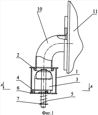 При нормальной работе системы через корпус 1 пропускается воздух, пружина 8 отжимает поплавок 3 в нижнее положение, и он не препятствует перетеканию воздуха через окна 9 из кабины. При приводнении самолета поплавок 3 и шток 5 под действием выталкивающей силы воды (Архимедовой силы) перемещается вверх, преодолевая усилие пружины 8, прижимает сферическую поверхность к кольцу 4 и, тем самым, перекрывает доступ воды в кабину. Плоская центрирующая пружина с загибами 4 жестко закреплена вместе со штоком 5 и поплавком 3 и предохраняет поплавок 3 от вибрационных нагрузок и ударов о корпус и одновременно является направляющей при всплытии поплавка, уменьшая его перекос.