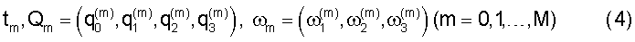 Здесь t01<…M, Qm – значение кватерниона Q, вычисленное на момент времени tm, m – значение угловой скорости, определенное на этот же момент времени. Как правило, tm+1-tm 2 с. Кватернион, задающий ориентацию спутника, определен с точностью до знака. Знаки Qm и момент t0 в (2) выбираются из условия