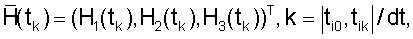 Сглаживание последовательности кватернионов (4) выполняется покомпонентно с использованием решения следующей задачи. Пусть для моментов времени tm (m=0, 1, …, M), tmm+1, известны приближенные значения хm f(tm) некоторой гладкой функции f(t). Требуется восстановить эту функцию на отрезке t0 t tM.